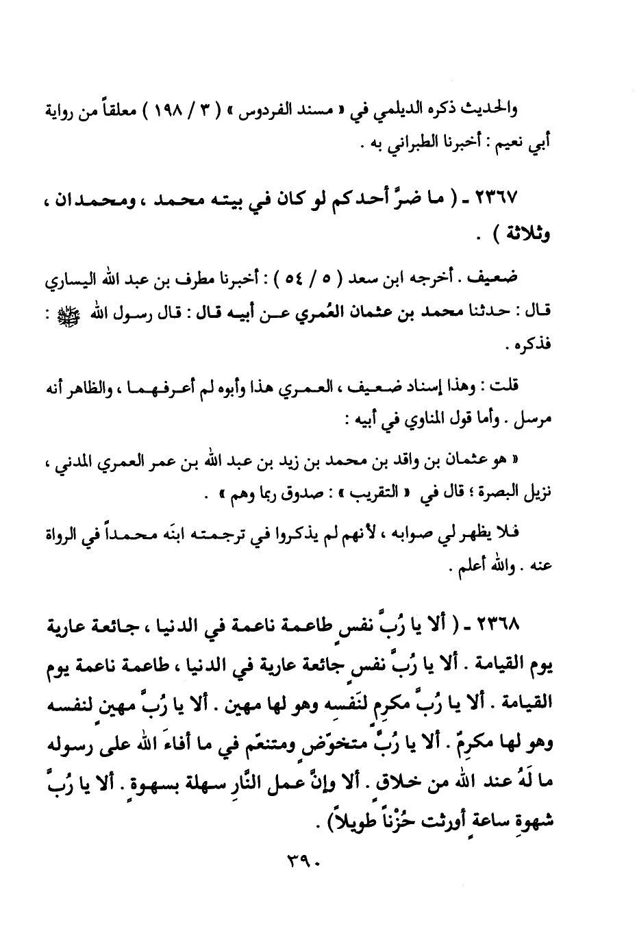 2367 - " ما شر أحدكم لوكان في بيته محمد، ومحمدان، وثلاثة ".