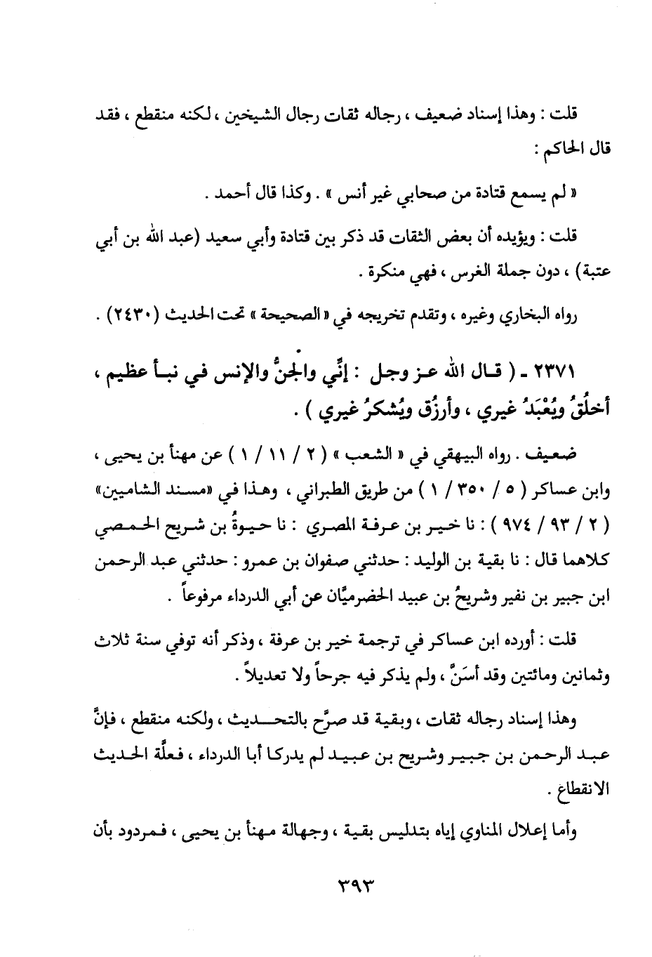 2371 - " قال الله عز وجل: إني والجن والإنس في نبأ عظيم، أخلق ويعبد غيري،