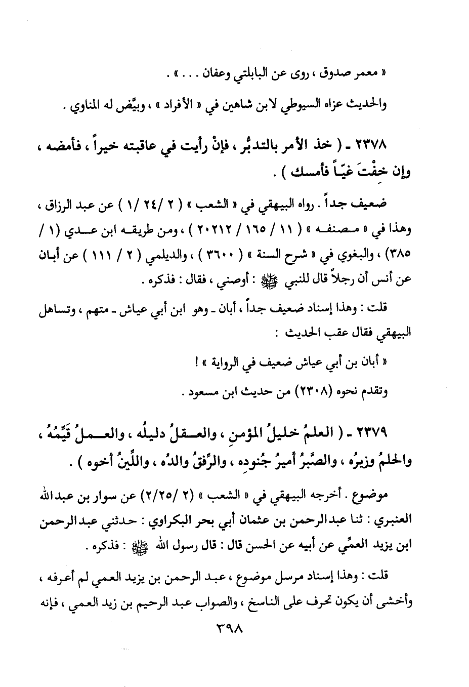2379 - " العلم خليل المؤمن، والعقل دليله، والعمل قيمه، والحلم وزيره، والصبر