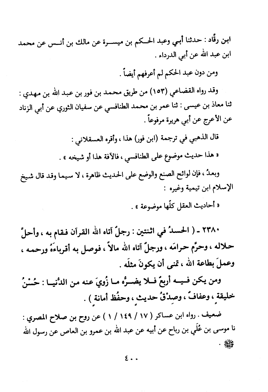 2380 - " الحسد في اثنتين: رجل آتاه الله القرآن فقام به، وأحل حلاله، وحرم حرامه