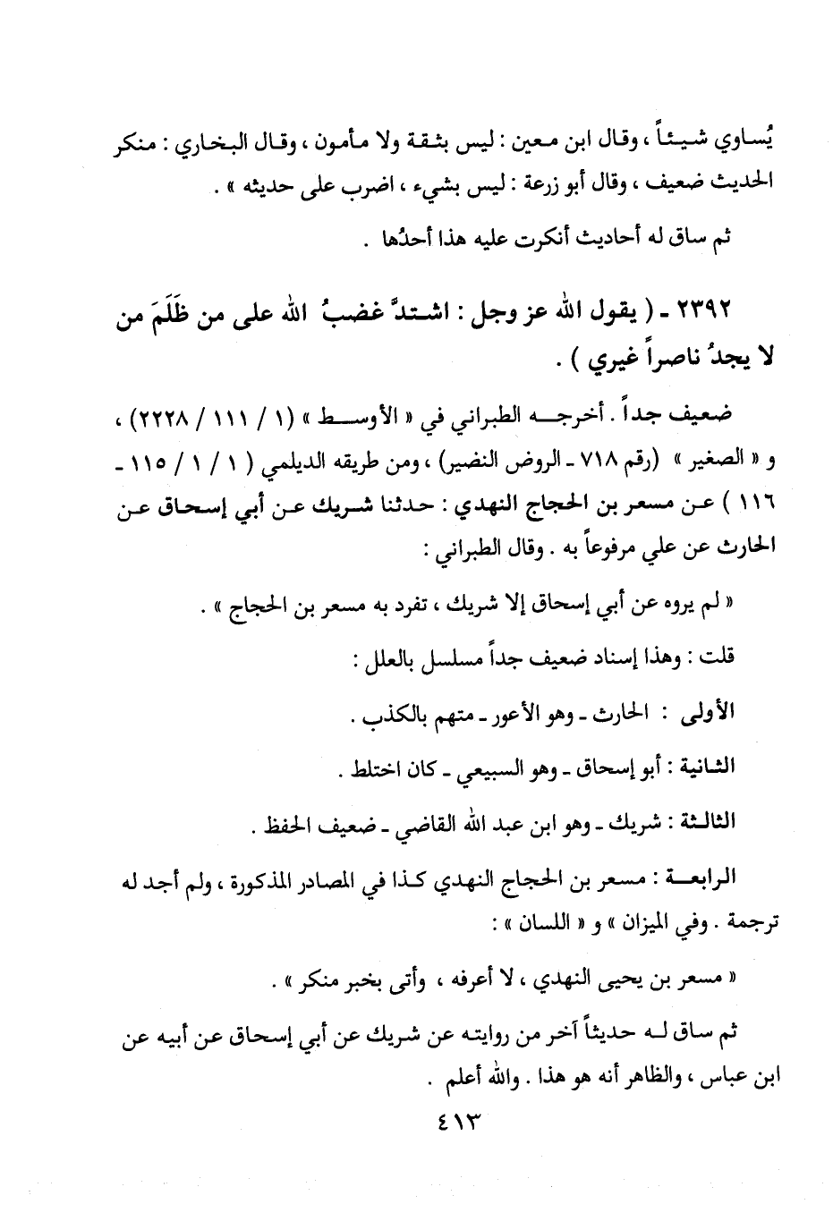 2392 - " يقول الله عز وجل: اشتد غضب الله على من ظلم من لا يجد ناصرا غيري ".