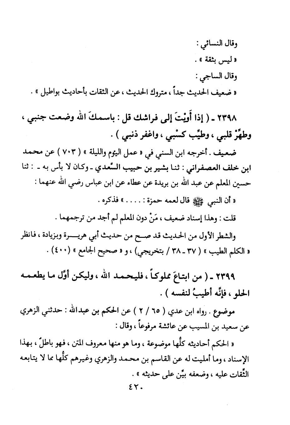 " الحكم أحاديثه كلها موضوعة، وما هو منها معروف المتن، فهو باطل، بهذا