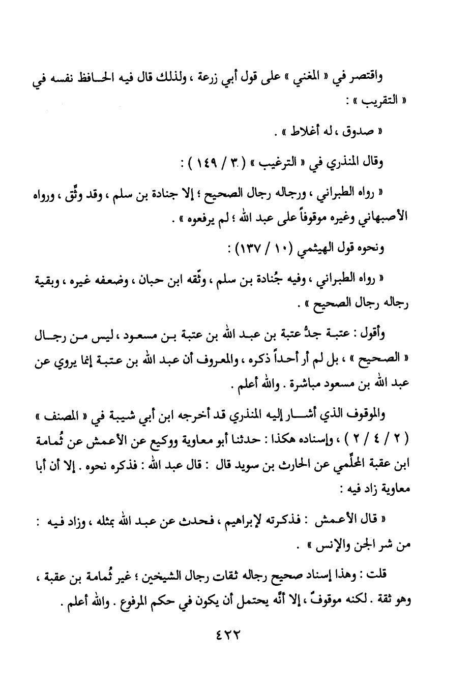 واقتصر في " المغني " على قول أبي زرعة، ولذلك قال فيه الحافظ نفسه في "