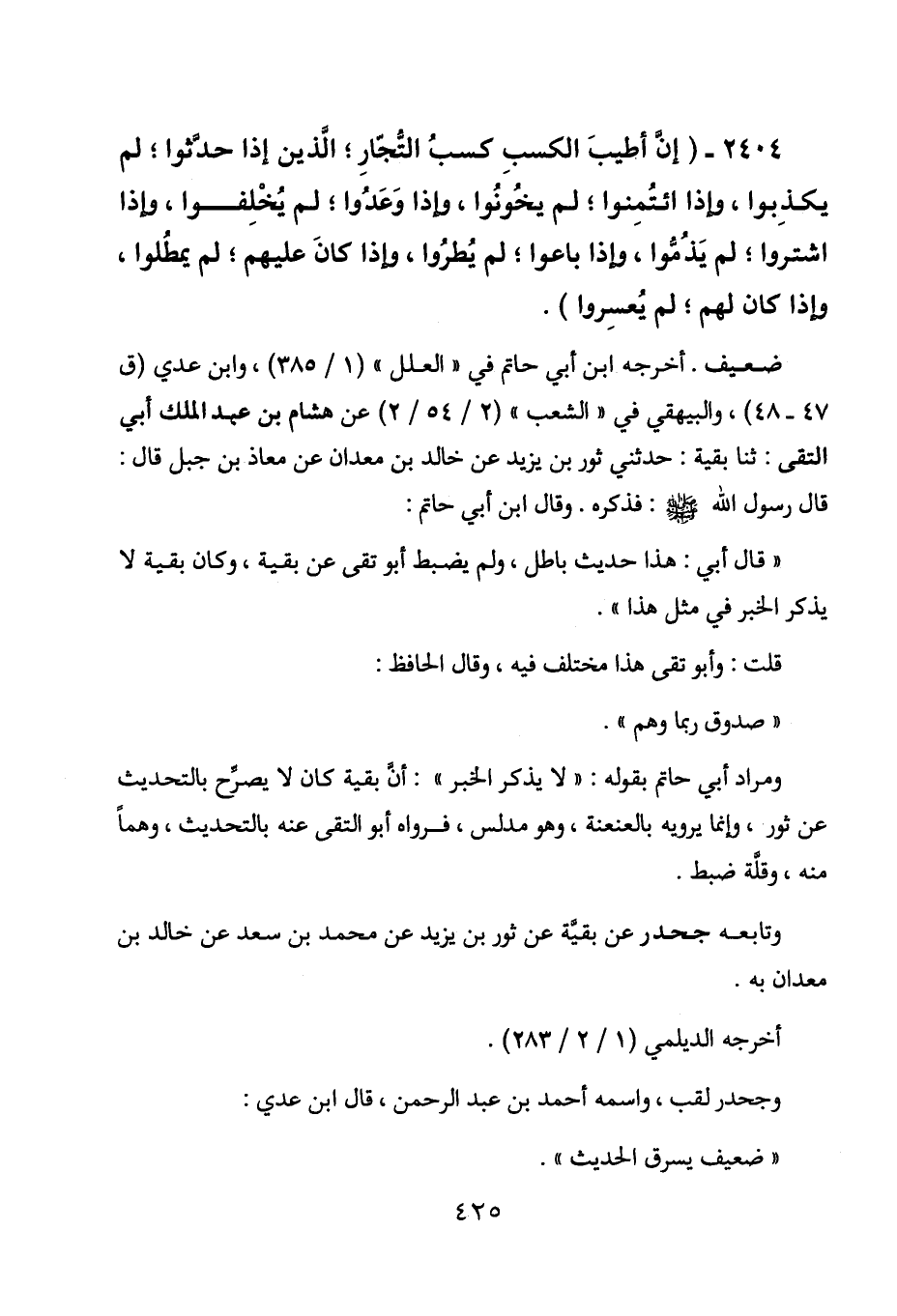 2404 - " إن اطيب الكسب كسب التجار؛ الذين إذا حدثوا؛ لم يكذبوا، وإذا ائتمنوا؛