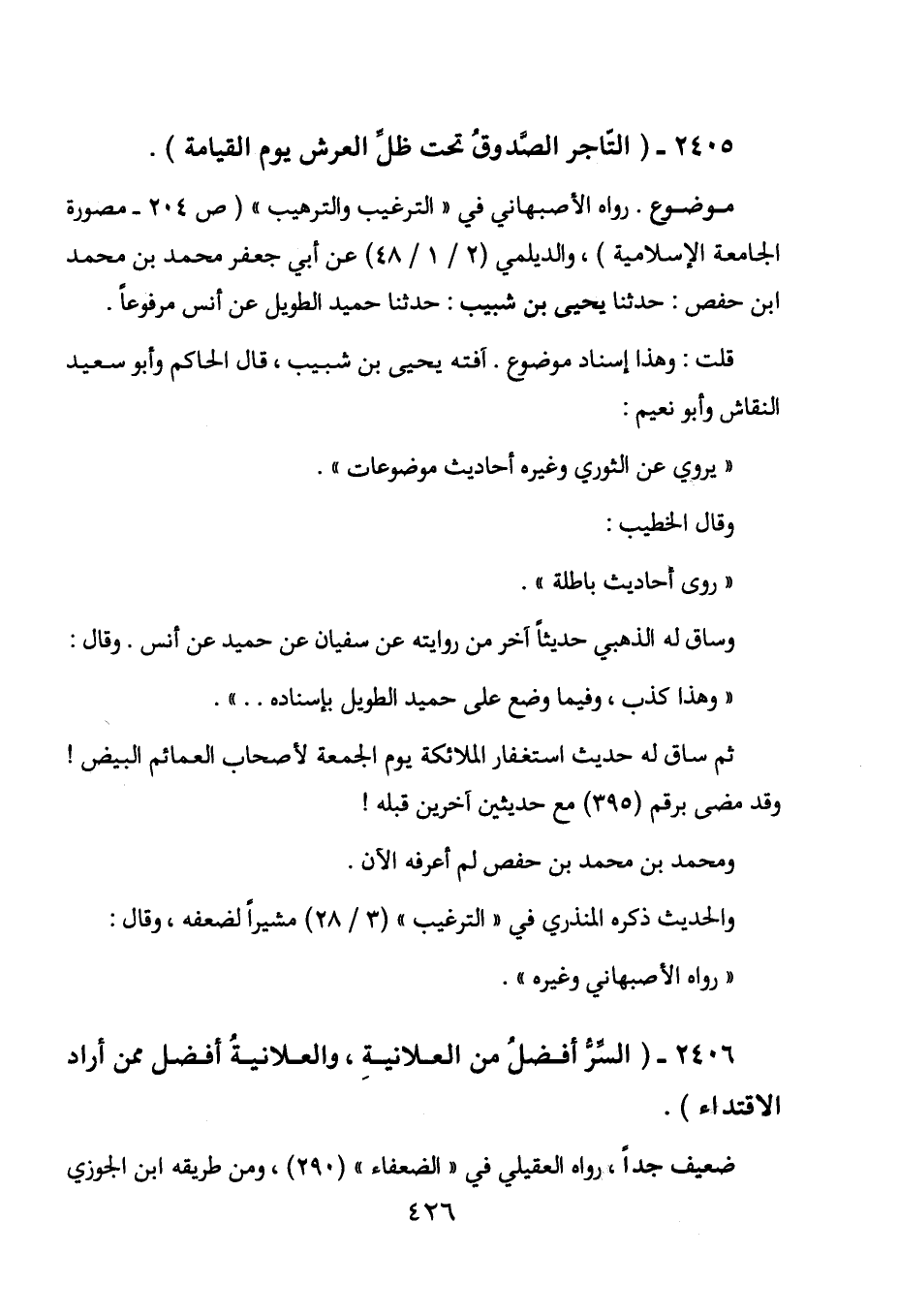2405 - " التاجر الصدوق تحت ظل العرش يوم القيامة ".