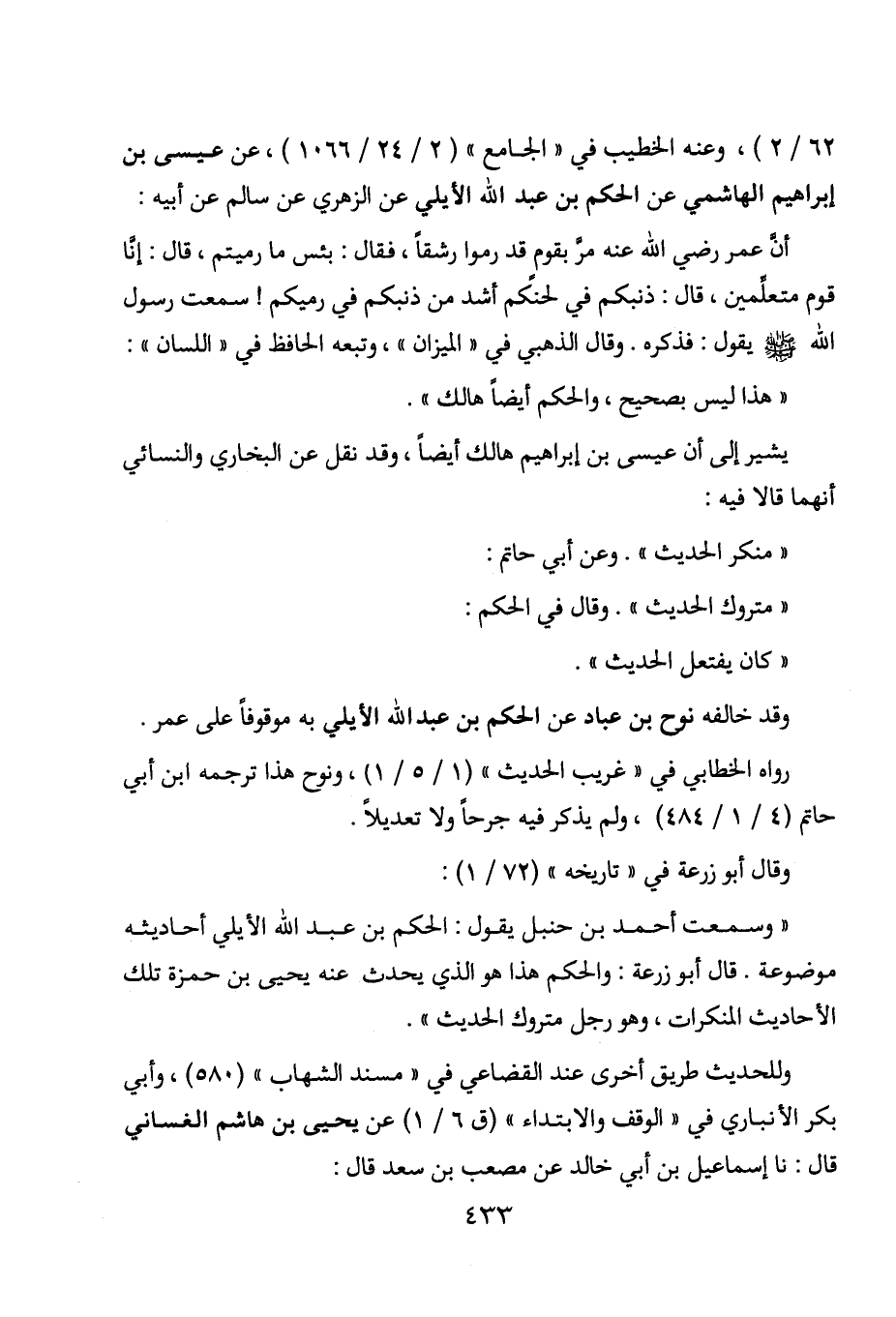 الخطيب في " الجامع " (2/24/1066) ، عن عيسى بن إبراهيم الهاشمي عن الحكم بن