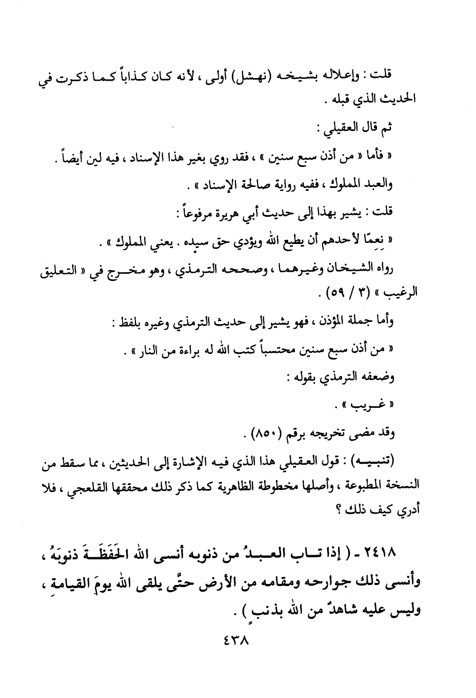 (تنبيه) : قول العقيلي هذا الذي فيه الإشارة إلى الحديثين، مما سقط من