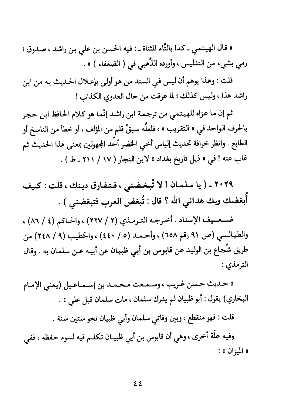 2029 - " يا سلمان! لا تبغضني، فتفارق دينك، قلت: كيف أبغضك وبك هداني الله؟ قال