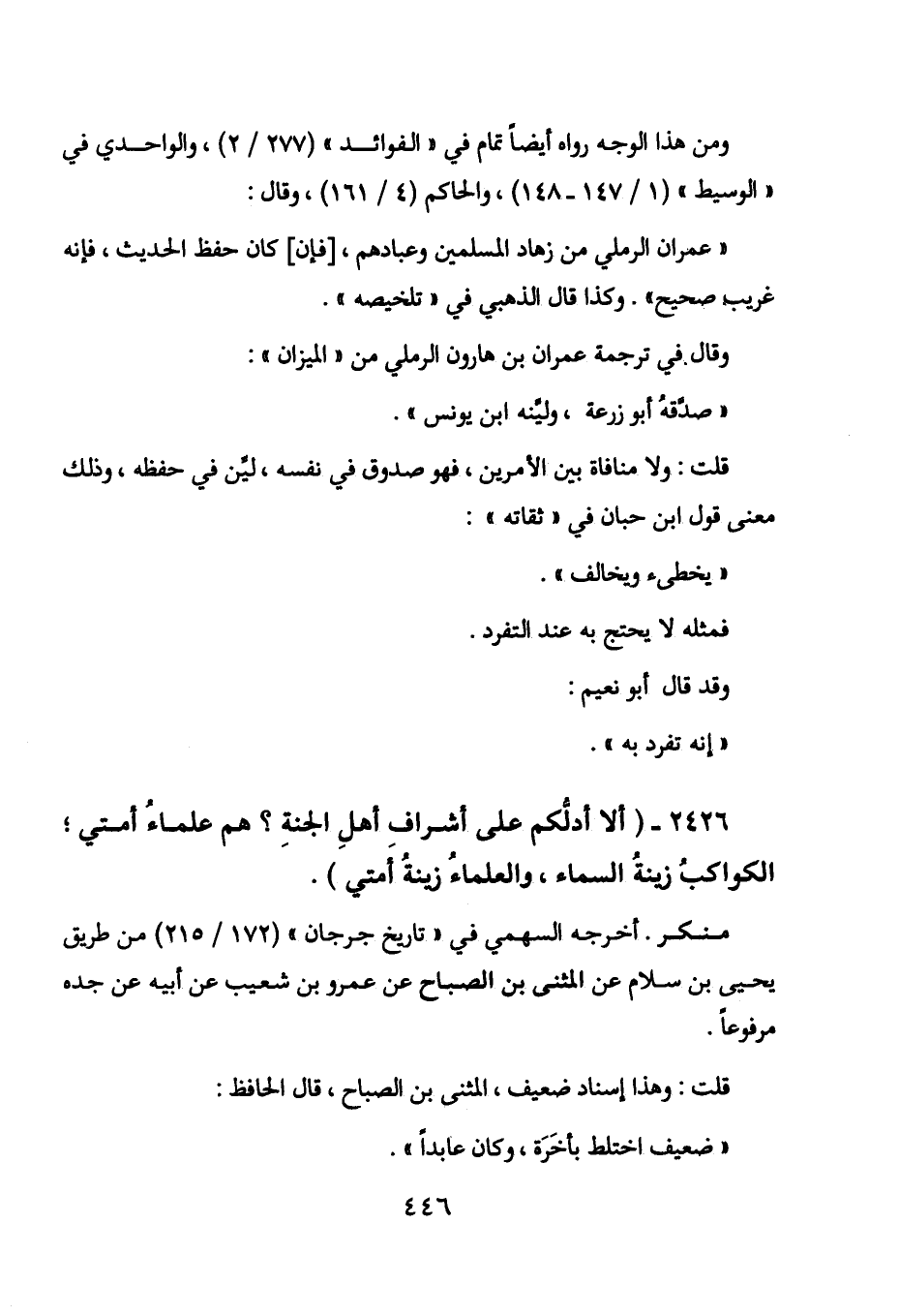 2426 - " ألا أدلكم على أشراف أهل الجنة؟ هم علماء أمتي؛ الكواكب زينة السماء،