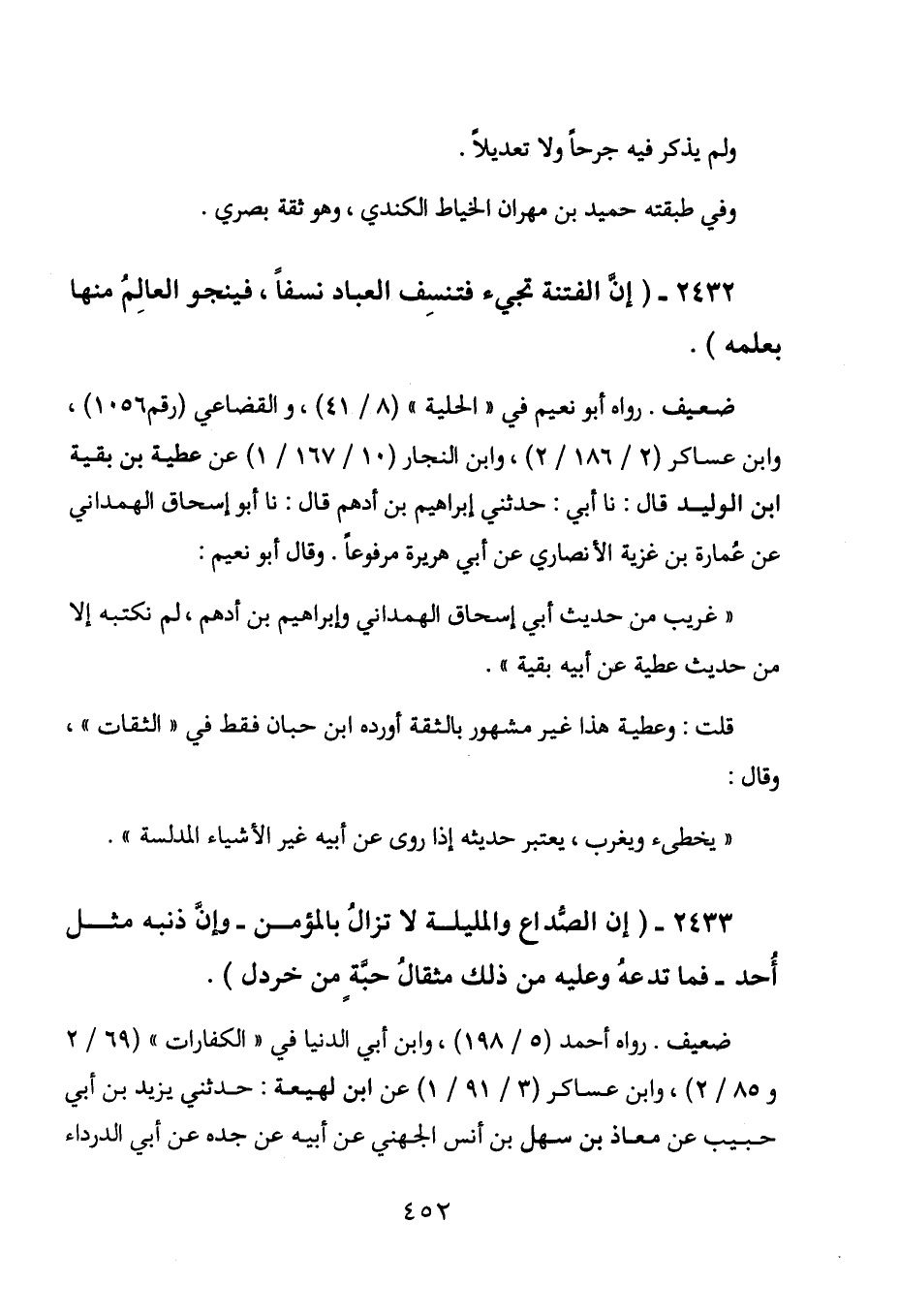 2432 - " إن الفتنة تجيء فتنسف العباد نسفا، فينجوالعالم منها بعلمه ".