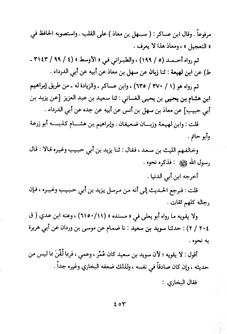 لهيعة: حدثنا زبان عن سهل بن معاذ عن أبيه عن أبي الدرداء.