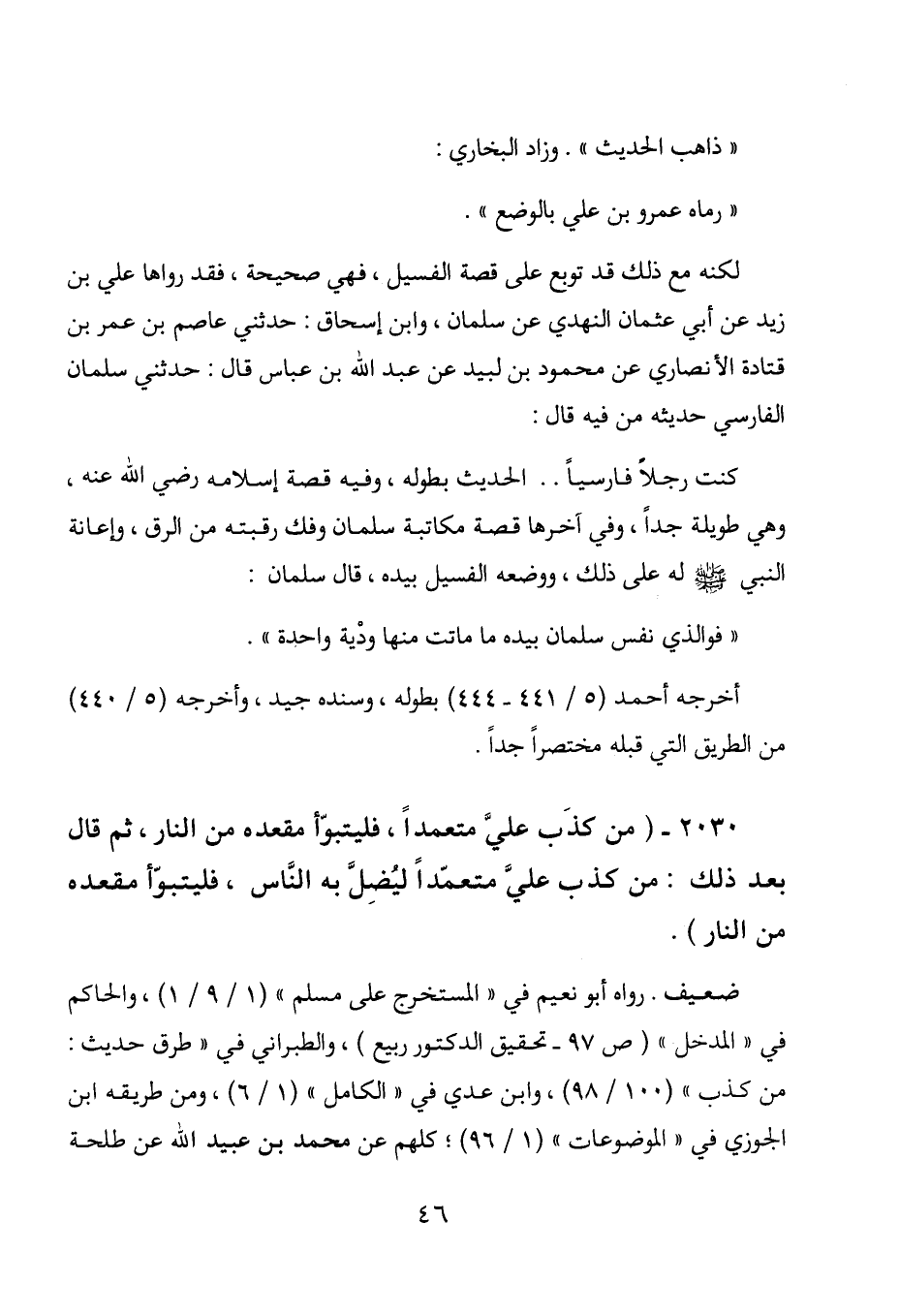 2030 - " من كذب علي متعمدا، فليتبوأ مقعده من النار، ثم قال بعد ذلك: من كذب علي