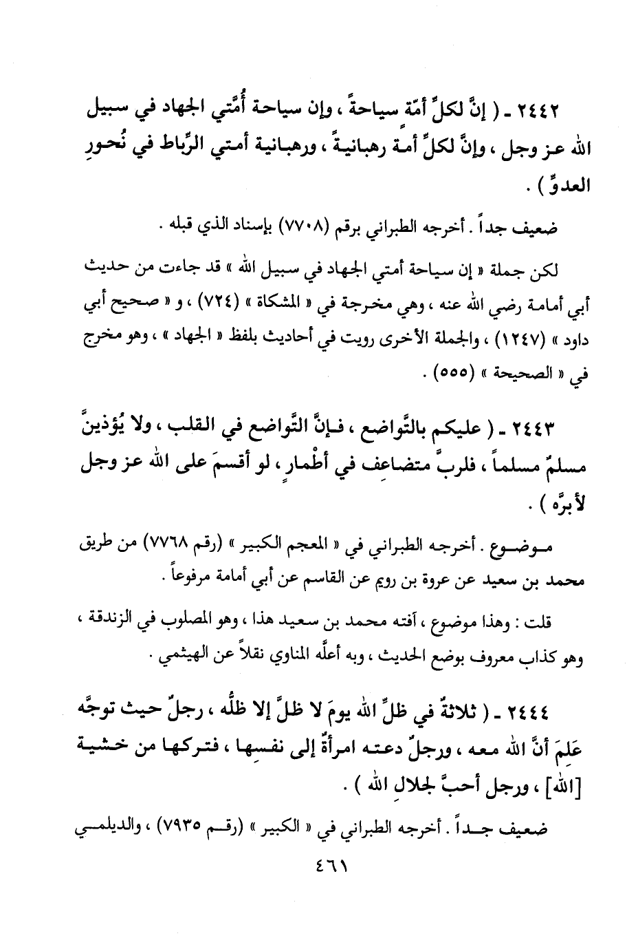 2442 - " إن لكل أمة سياحة، وإن سياحة أمتي الجهاد في سبيل الله عز وجل، وإن لكل