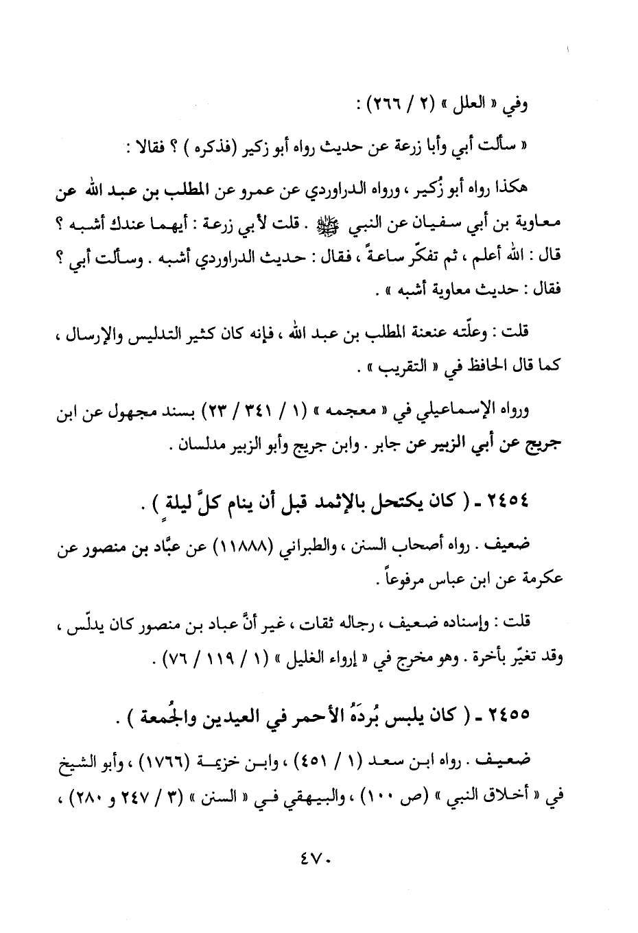 2455 - " كان يلبس برده الأحمر في العيدين والجمعة ".