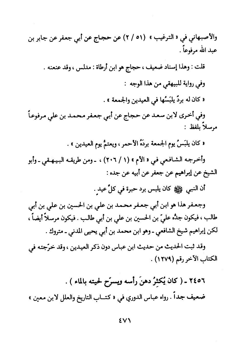 2456 - " كان يكثر دهن رأسه ويسرح لحيته بالماء ".