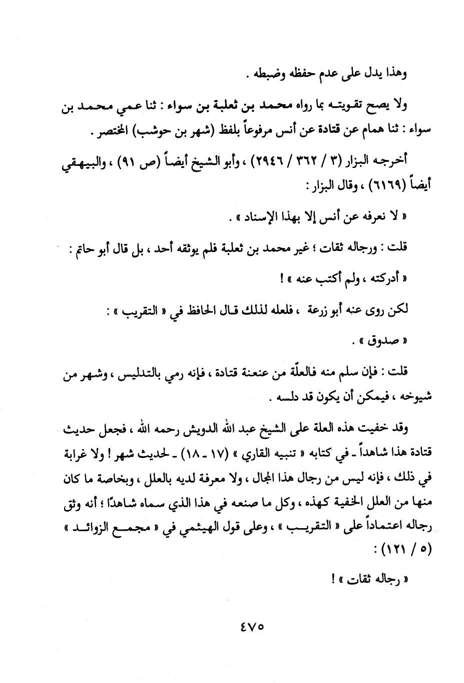 قلت: ورجاله ثقات؛ غير محمد بن ثعلبة فلم يوثقه أحد، بل قال أبو حاتم: