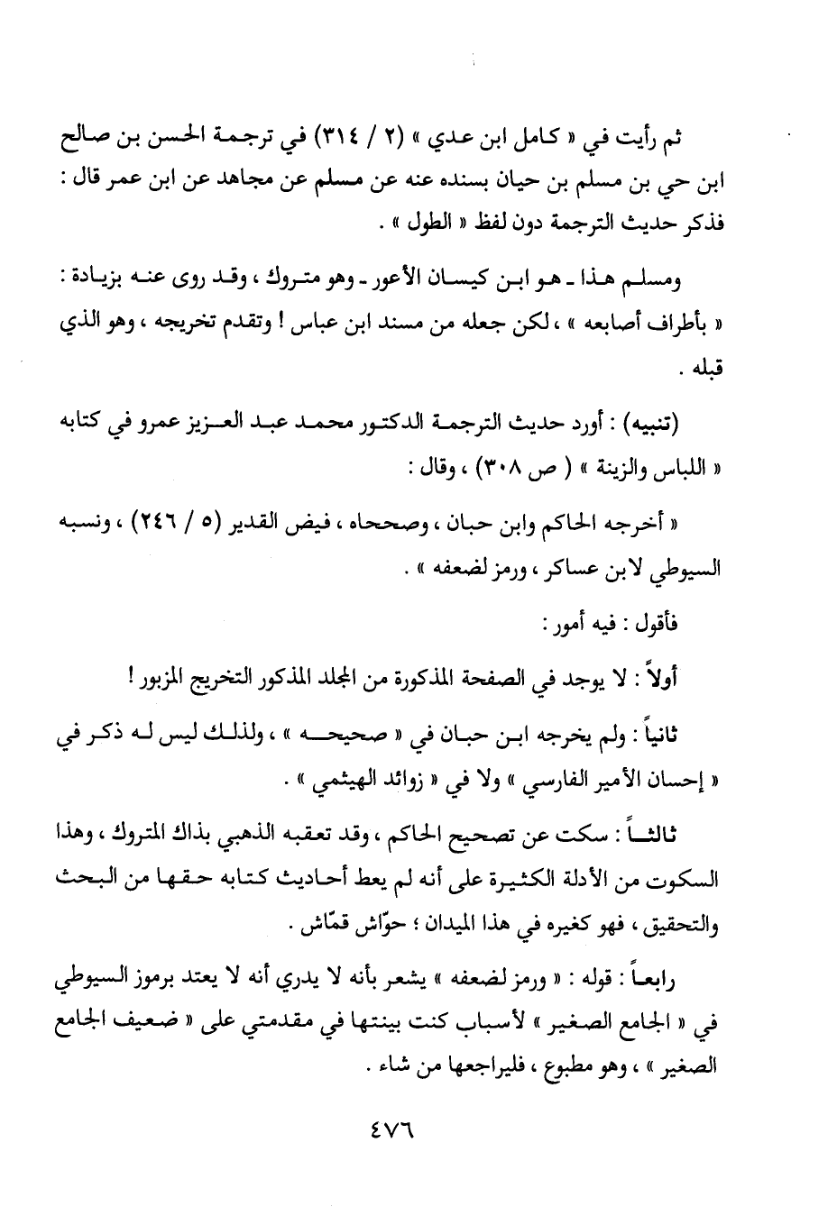ثم رأيت في " كامل ابن عدي " (2/314) في ترجمة الحسن بن صالح بن حي بن مسلم
