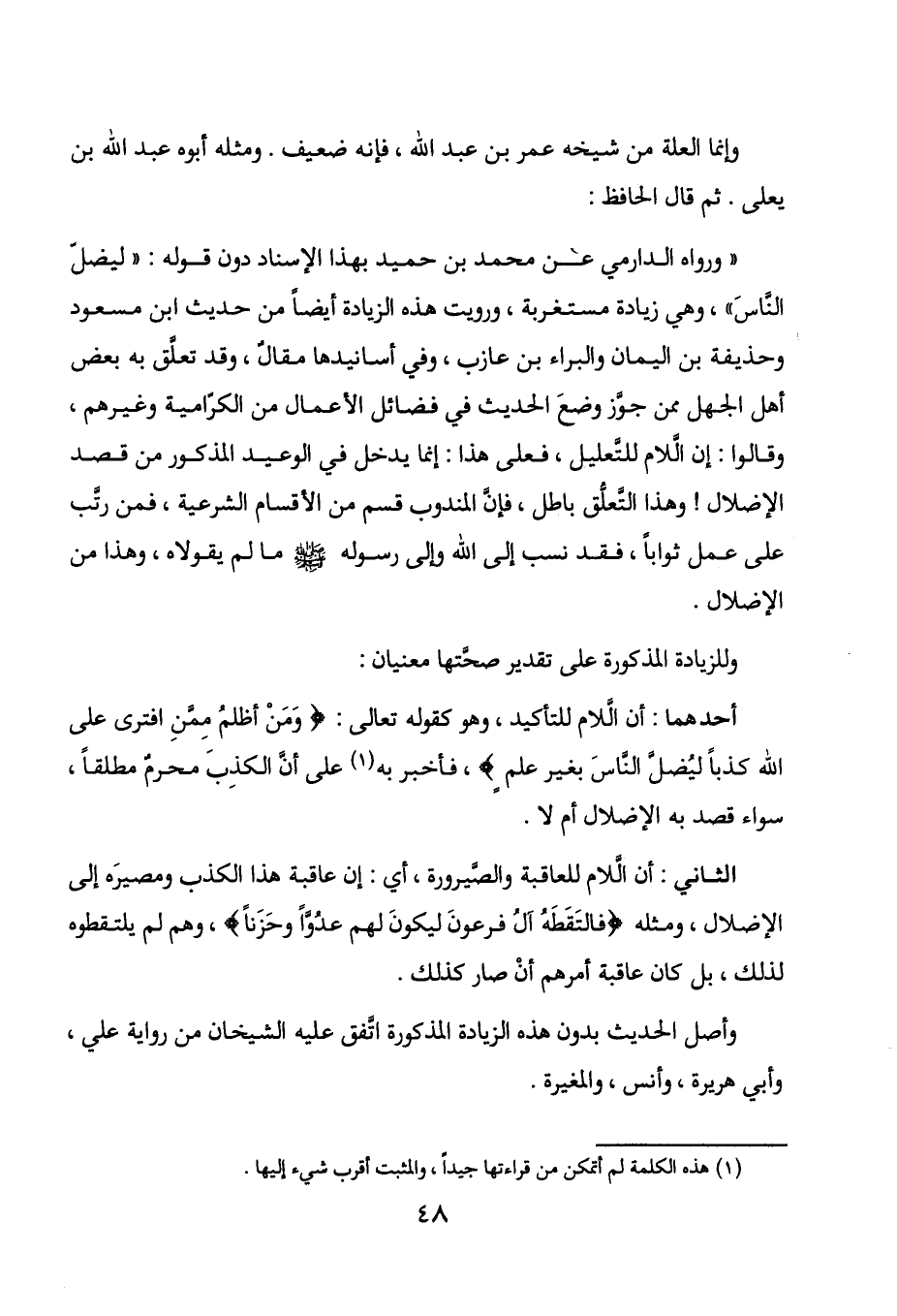" ورواه الدارمي عن محمد بن حميد بهذا الإسناد دون قوله: " ليضل الناس "،