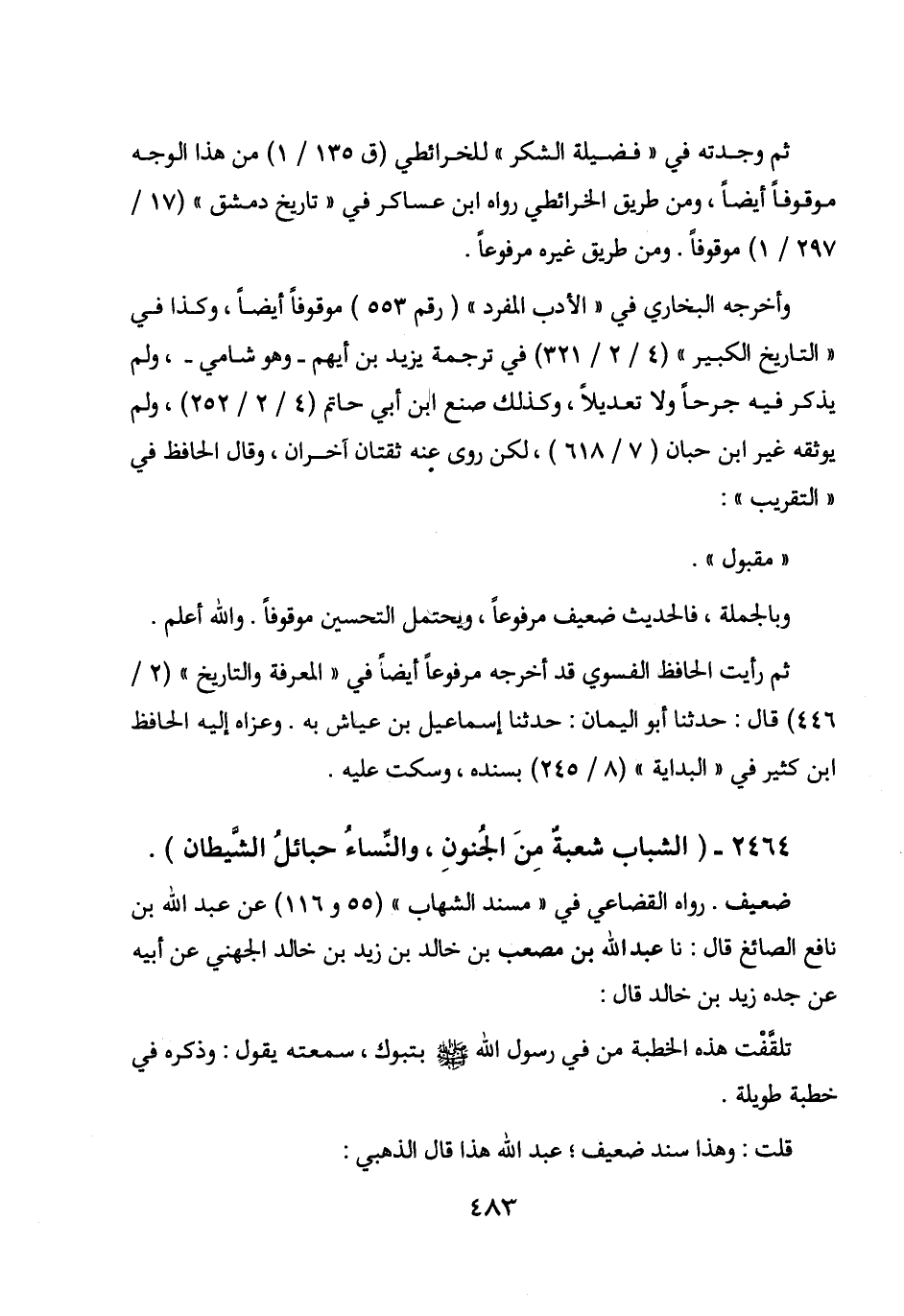 2464 - " الشباب شعبة من الجنون، والنساء حبائل الشيطان ".