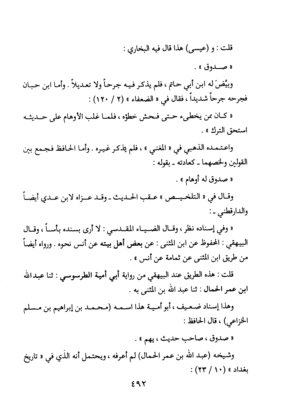 قلت: و (عيسى) هذا قال فيه البخاري: