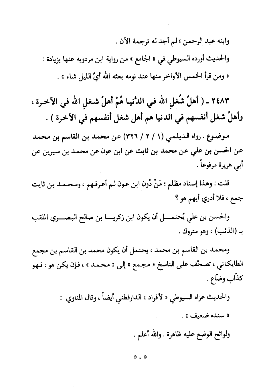 2483 - " أهل شغل الله في الدنيا هم أهل شغل الله في الآخرة، وأهل شغل أنفسهم في