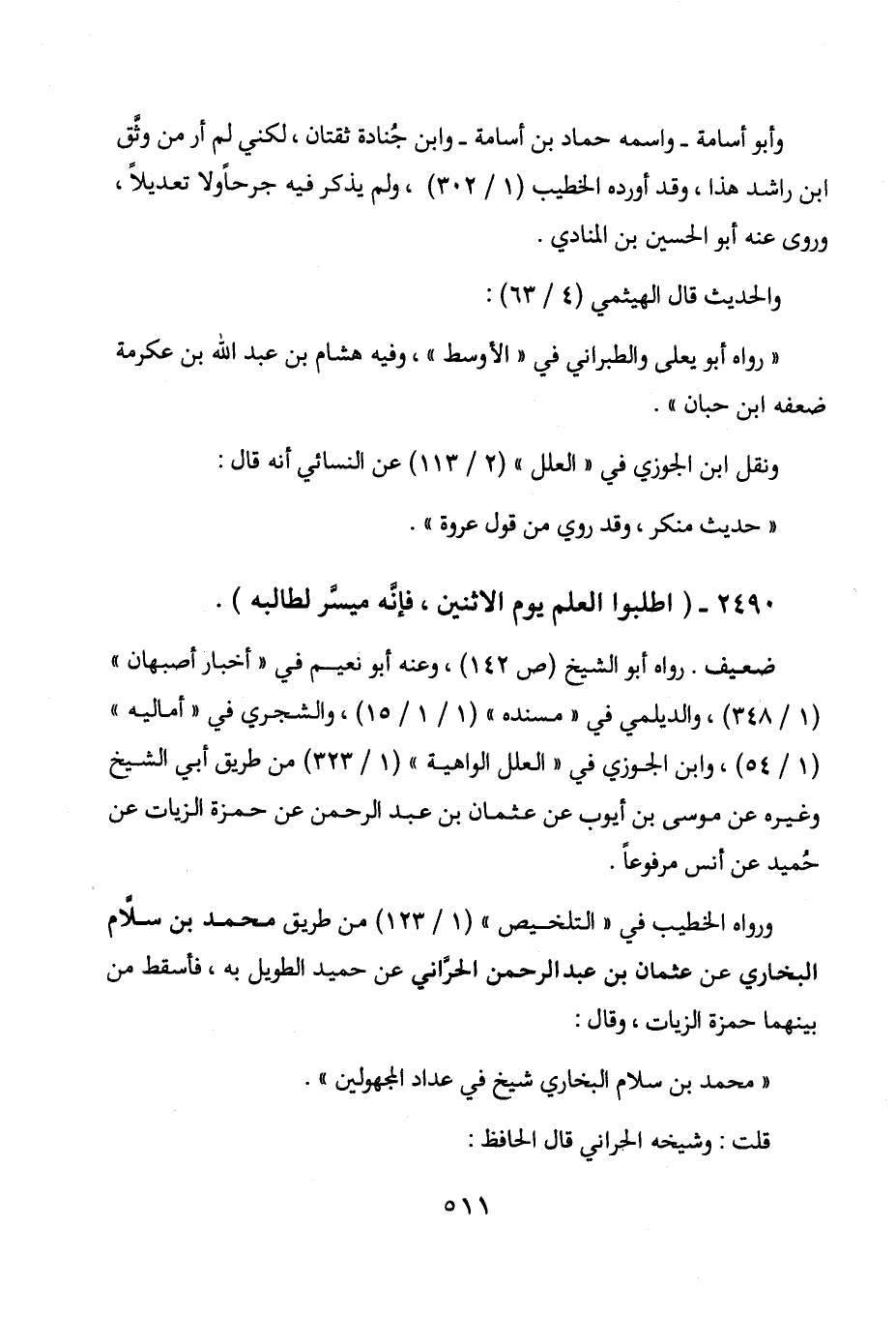 2490 - " اطلبوا العلم يوم الاثنين، فإنه ميسر لطالبه ".