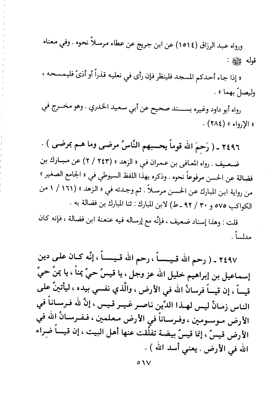 2497 - " رحم الله قيسا، رحم الله قيسا، إنه كان على دين إسماعيل بن إبراهيم