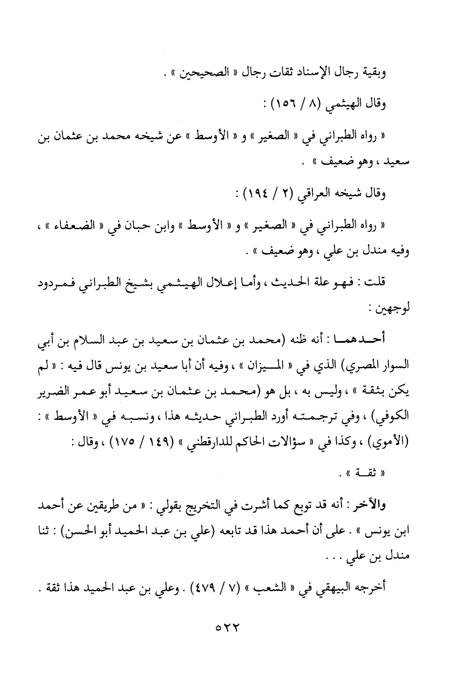 " رواه الطبراني في " الصغير " و" الأوسط " عن شيخه محمد بن عثمان بن سعيد،
