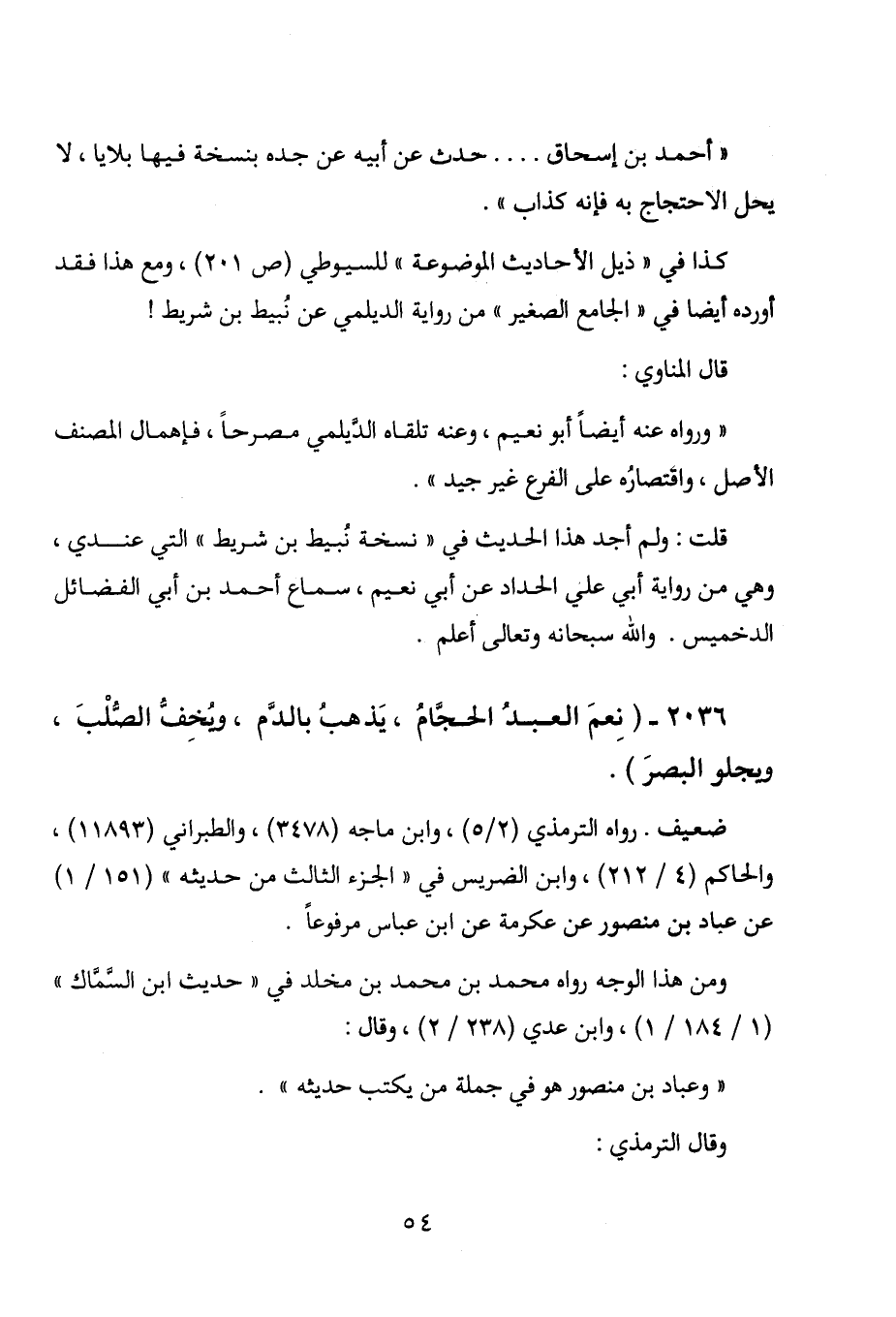 2036 - " نعم العبد الحجام، يذهب بالدم، ويخف الصلب، ويجلوالبصر ".