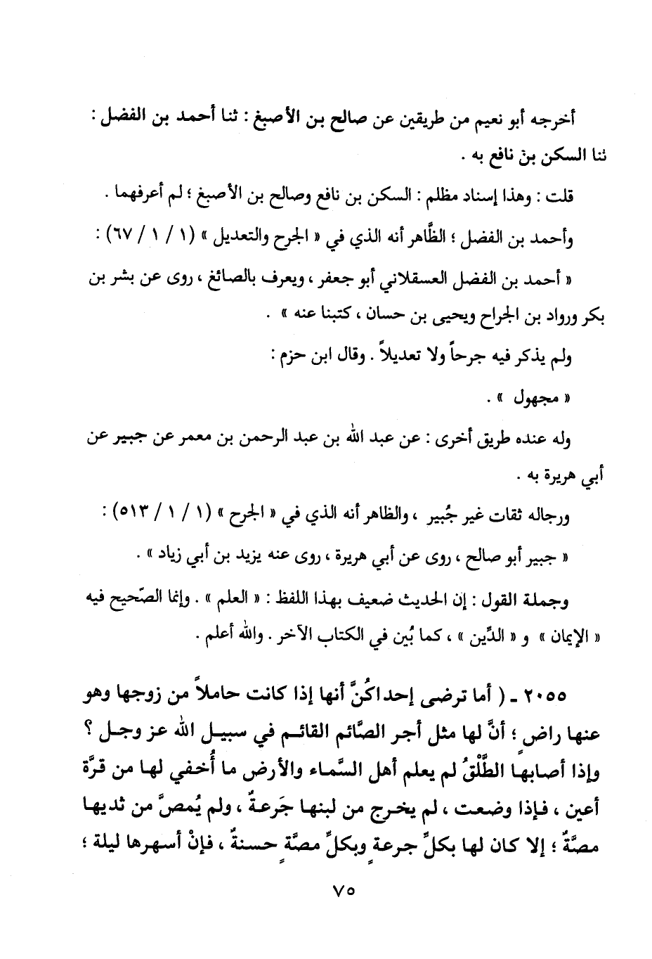 2055 - " أما ترضى إحداكن أنها إذا كانت حاملا من زوجها وهو عنها راض؛ أن لها مثل
