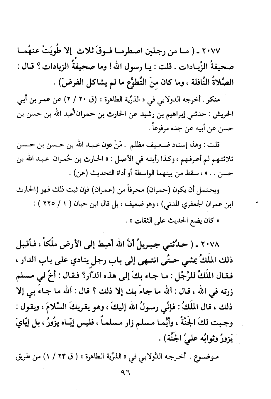 2077 - " ما من رجلين اصطرما فوق ثلاث إلا طويت عنهما صحيفة الزيادات. قلت: