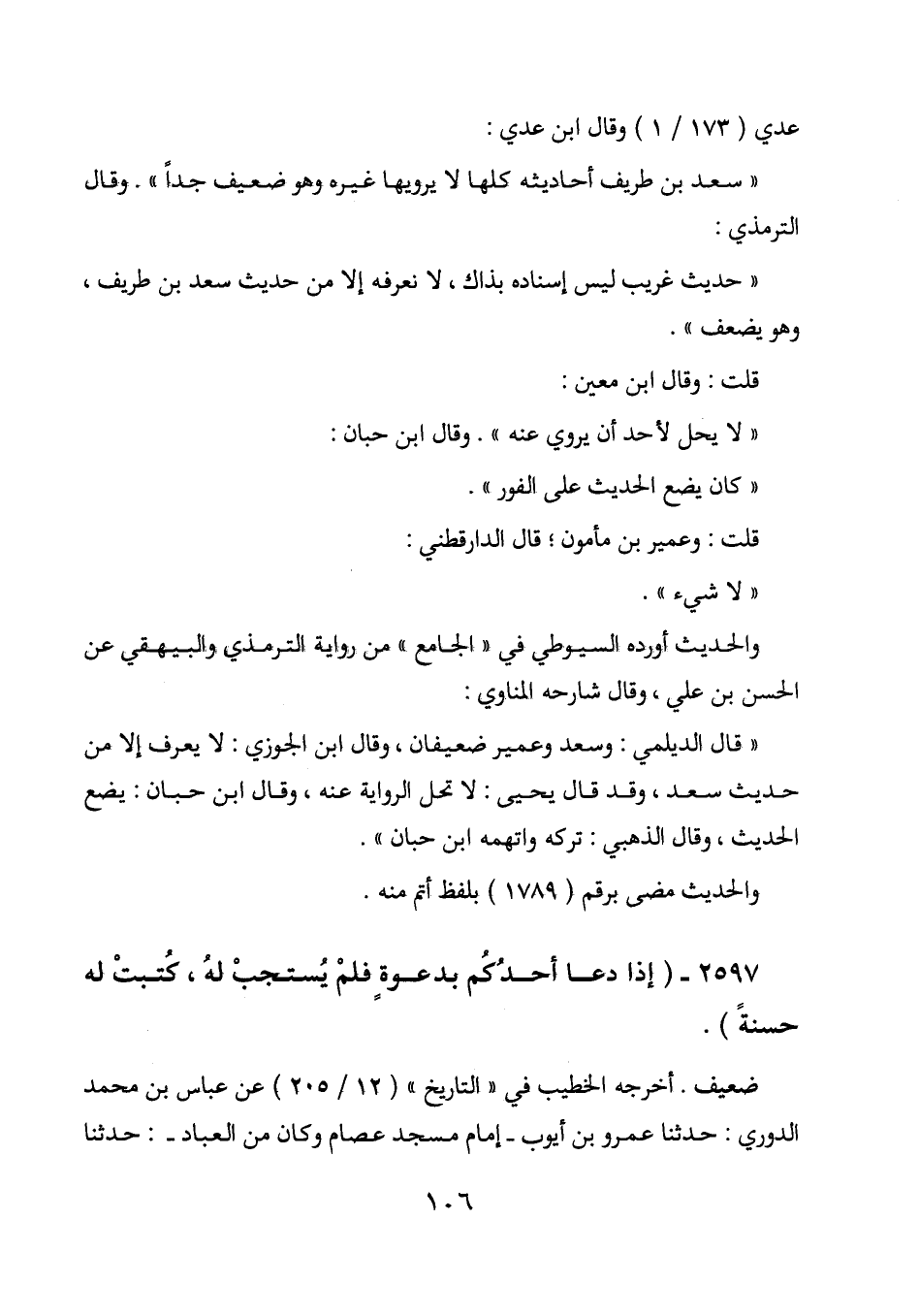 " سعد بن طريف أحاديثه كلها لا يرويها غيره وهو ضعيف جدا ". وقال الترمذي: