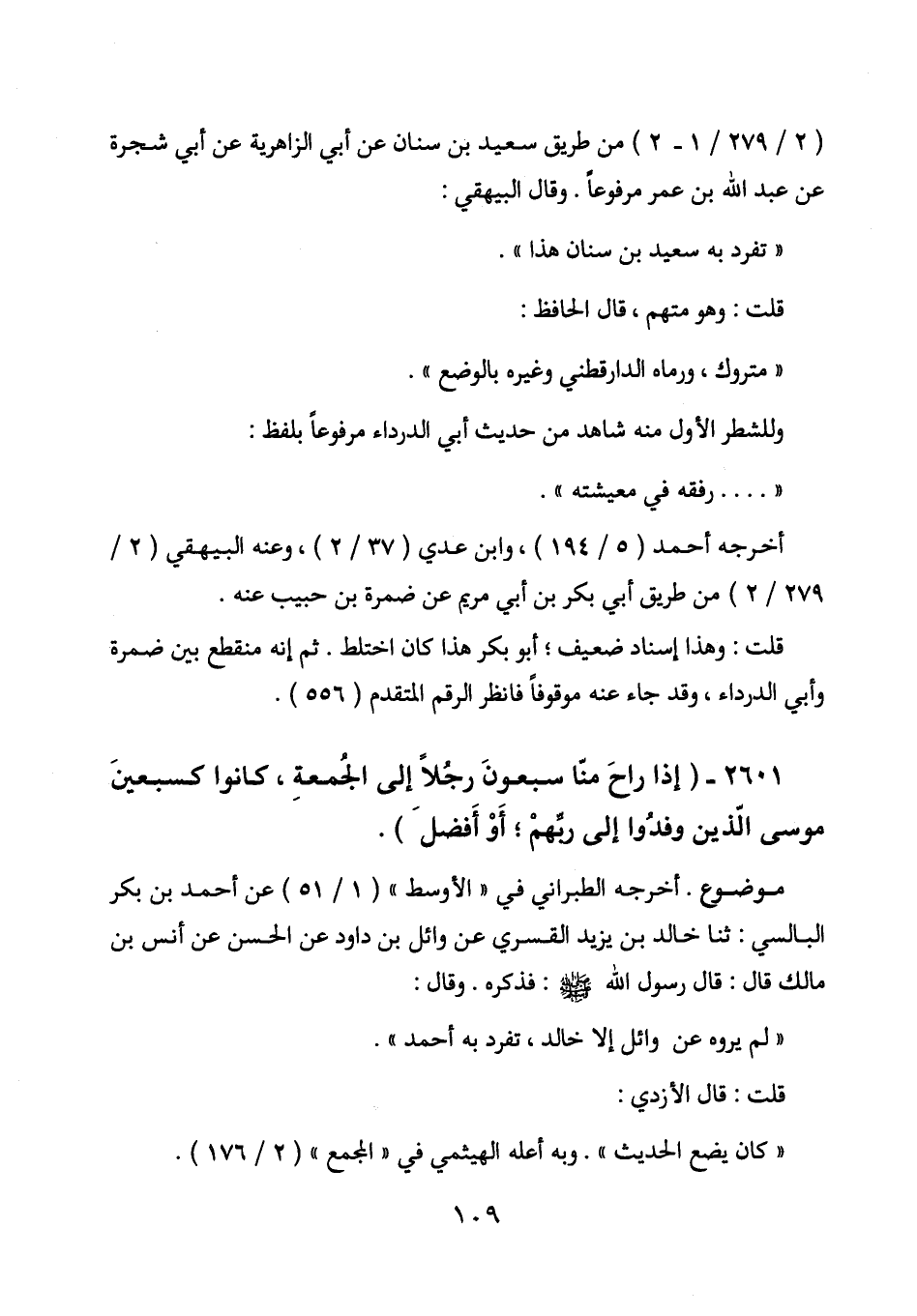 2601 - (إذا راح منا سبعون رجلا إلى الجمعة، كانوا كسبعين موسى الذين وفدوا إلى ربهم؛ أو أفضل) .