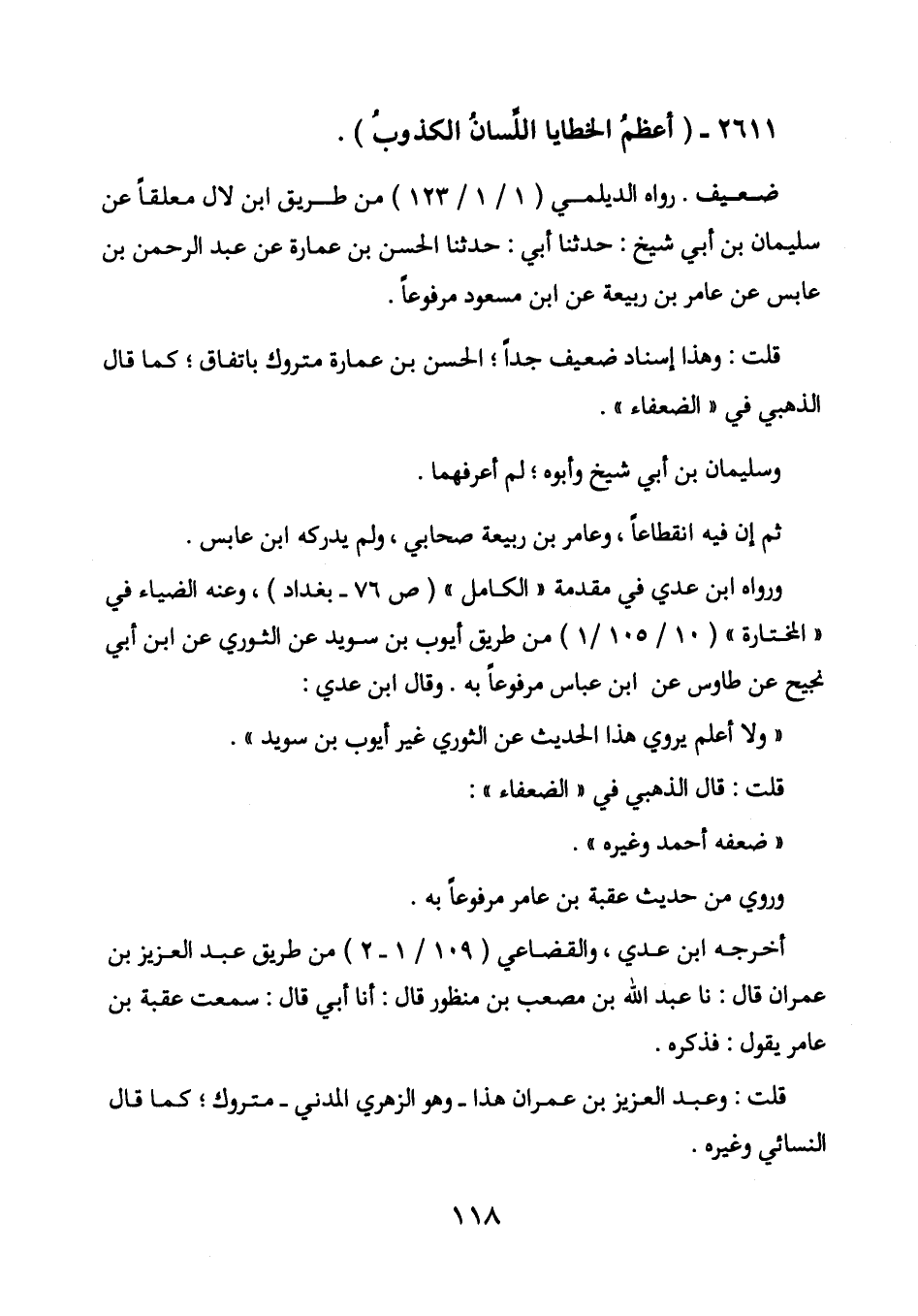 2611 - (أعظم الخطايا اللسان الكذوب) .