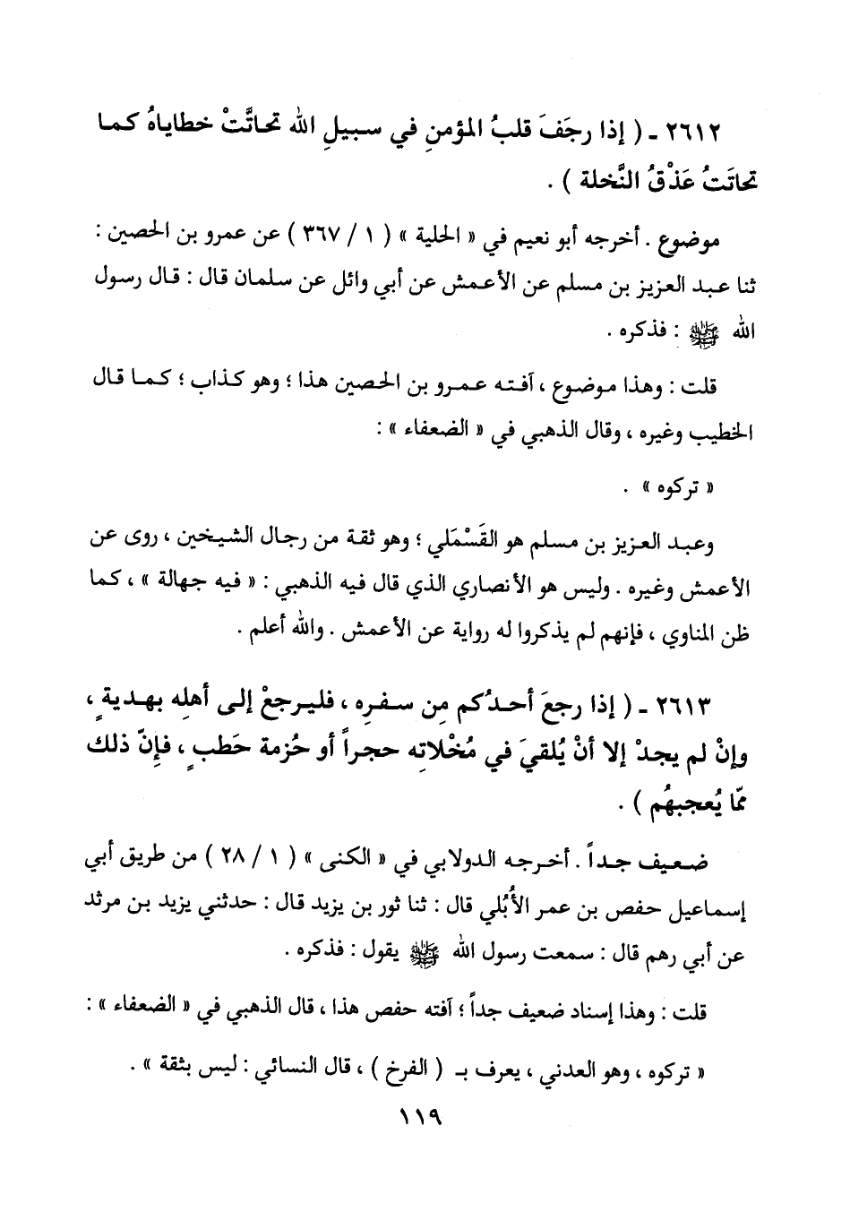 2612 - (إذا رجف قلب المؤمن في سبيل الله تحاتت خطاياه كما تحاتت عذق النخلة) .