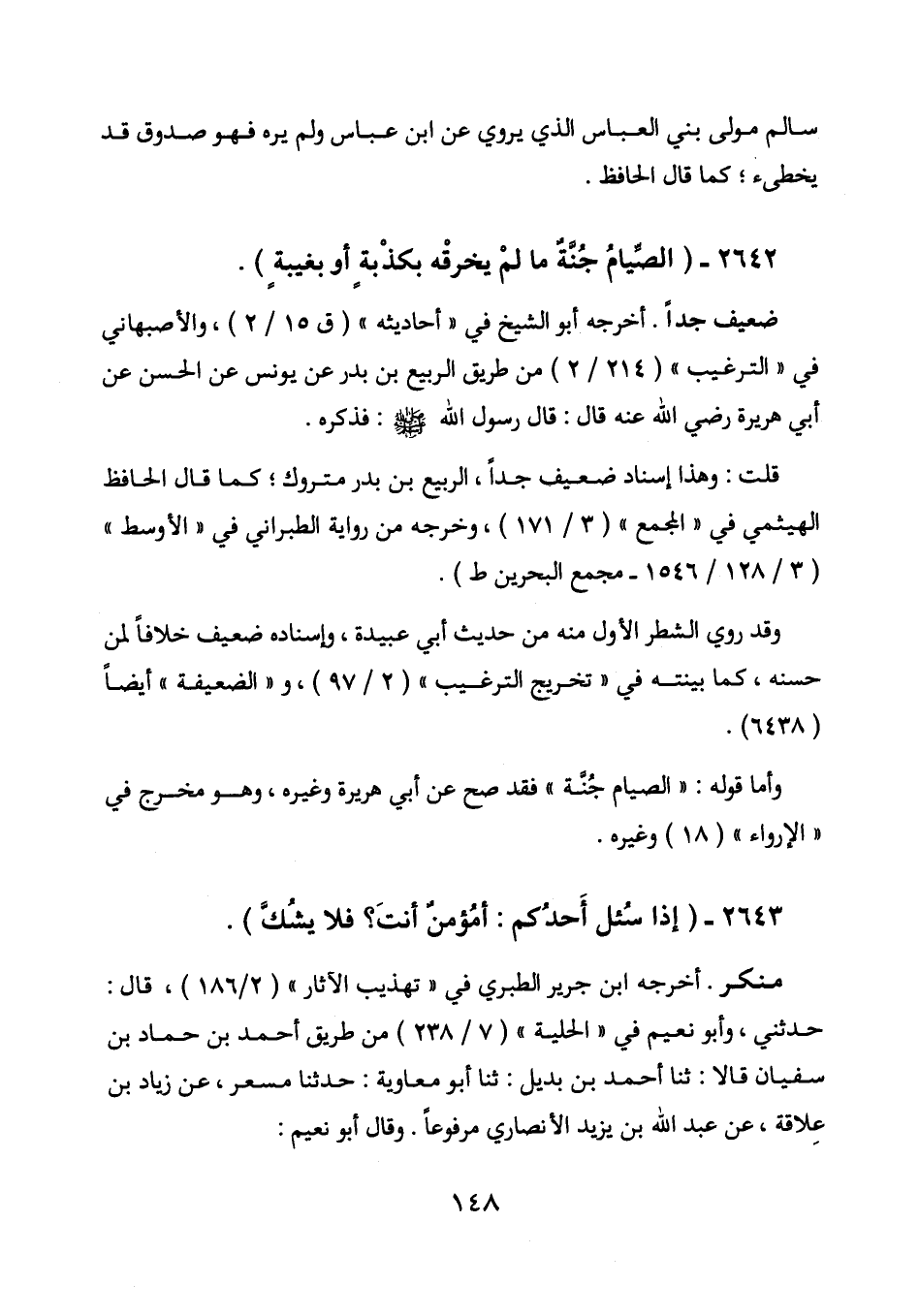 2642 - (الصيام جنة ما لم يخرقه بكذبه أو بغيبة) .