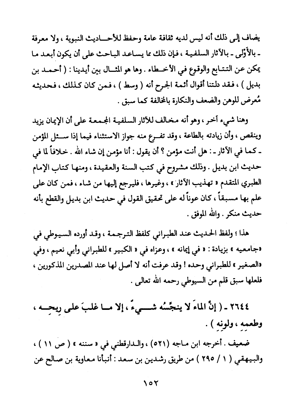 وهنا شيء آخر، وهو أنه مخالف للآثار السلفية المجمعة على أن الإيمان يزيد وينقص، وأن زيادته بالطاعة، وقد تفرع منه جواز الاستثناء فيما إذا سئل المؤمن - كما في الآثار -: هل أنت مؤمن؟ أن يقول: أنا مؤمن إن شاء الله. خلافا لما في حديث ابن بديل. وذلك مشروح في كتب السنة والعقيدة، ومنها كتاب الإمام الطبري المتقدم " تهذيب الآثار "، وغيرها، فليرجع إليها من شاء، فمن كان على علم بها مسبقا،؟ كان عونا له على تحقيق القول في حديث ابن بديل والقطع بأنه حديث منكر. والله الموفق.