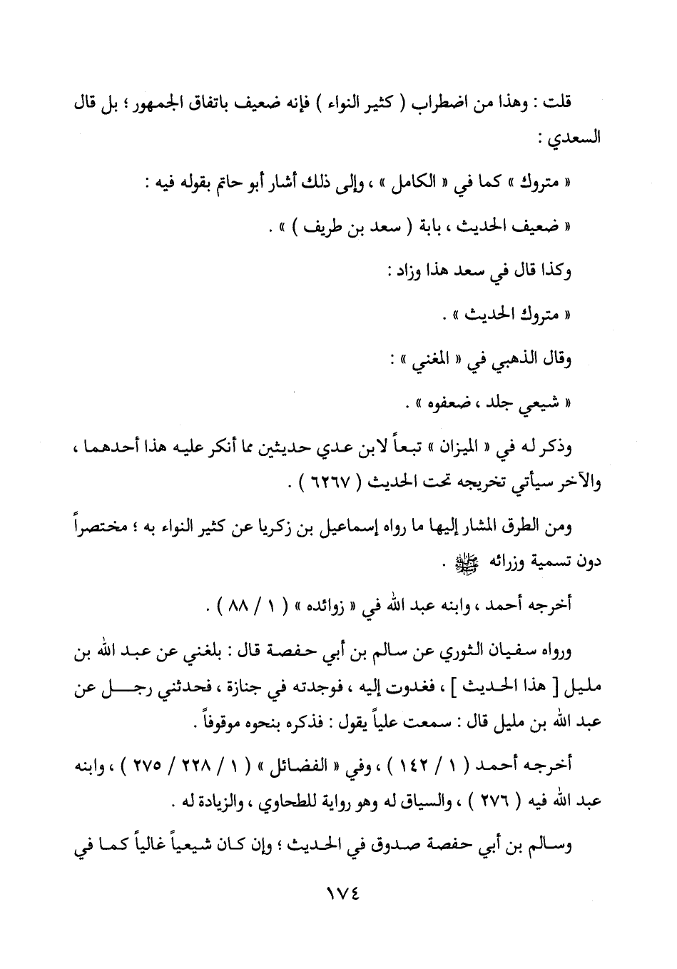 " ضعيف الحديث "، بابة (سعد بن طريف) ".