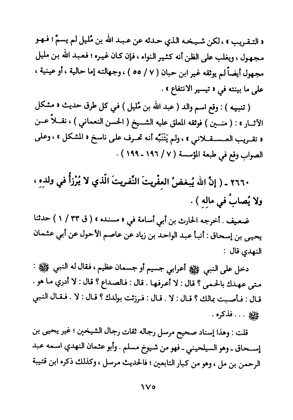 2660 - (إن الله يبغض العفريت النفريت الذي لا يرزأ في ولده، ولا يصاب في ماله) .