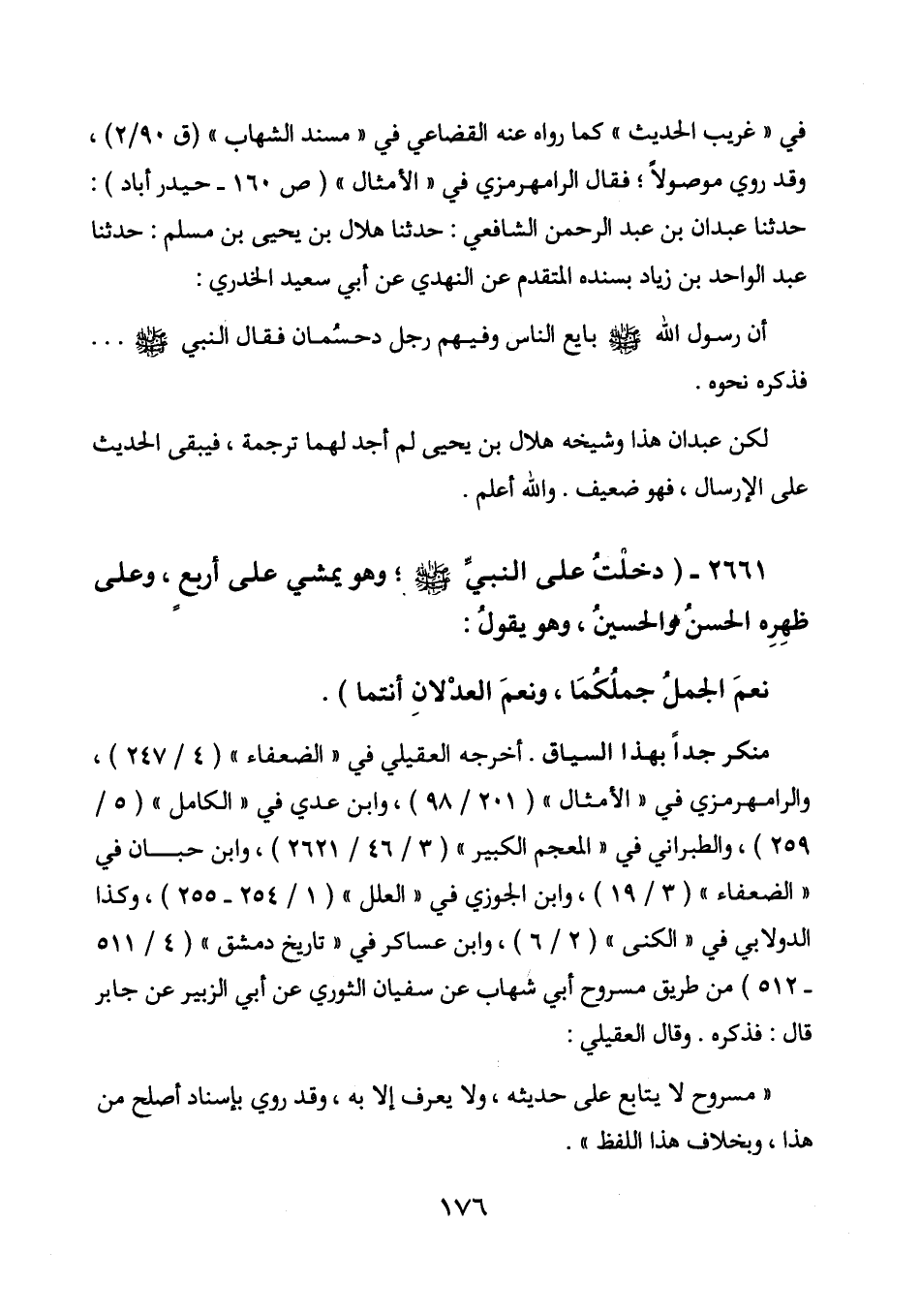 2661 - (دخلت على النبي صلى الله عليه وسلم، وهو يمسي على أربع، وعلى ظهره الحسن والحسين، وهو يقول:
