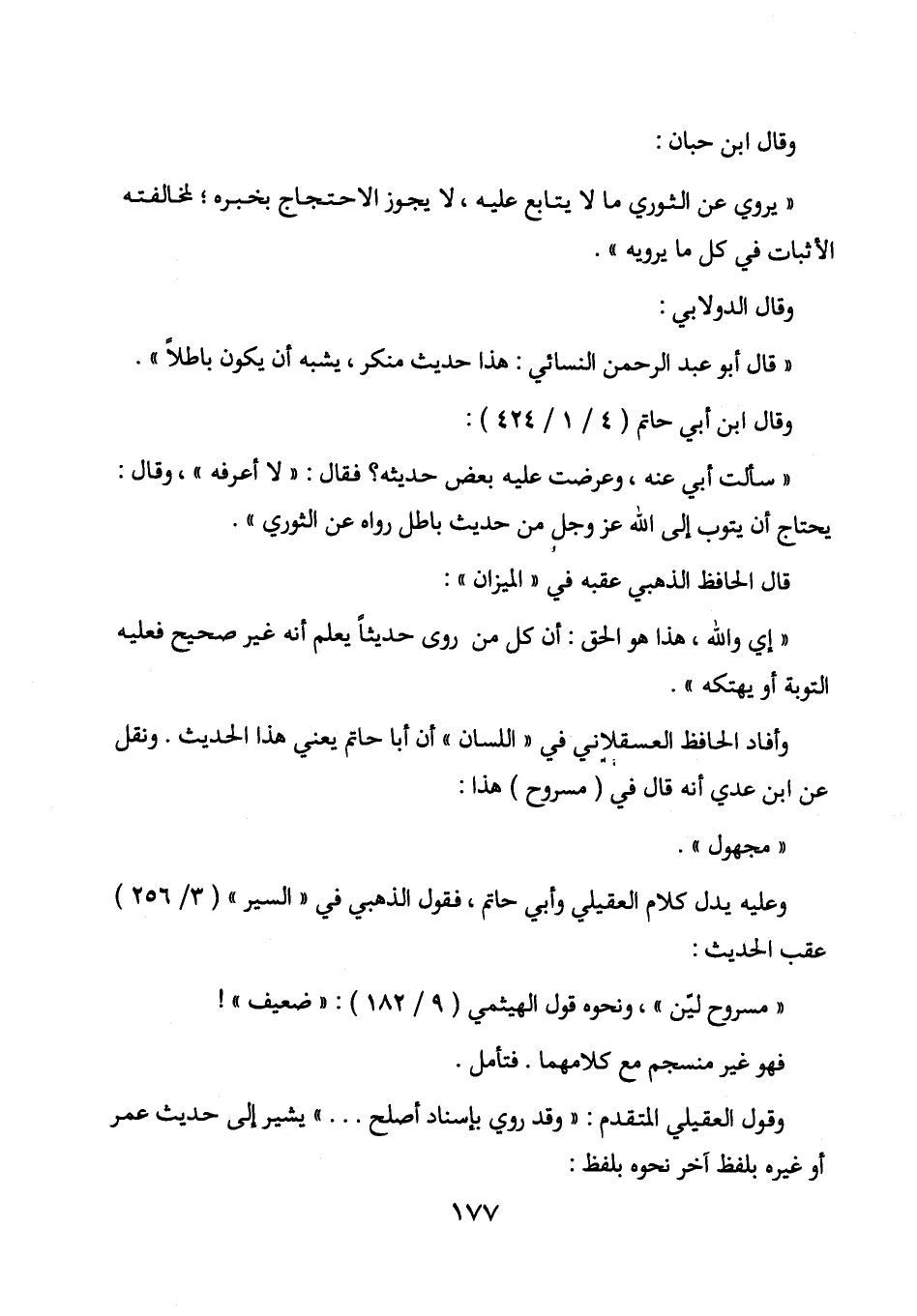 وأفاد الحافظ العسقلاني في " اللسان " أن أبا حاتم يعني هذا الحديث. ونقل عن ابن عدي أنه قال في (مسرح) هذا: