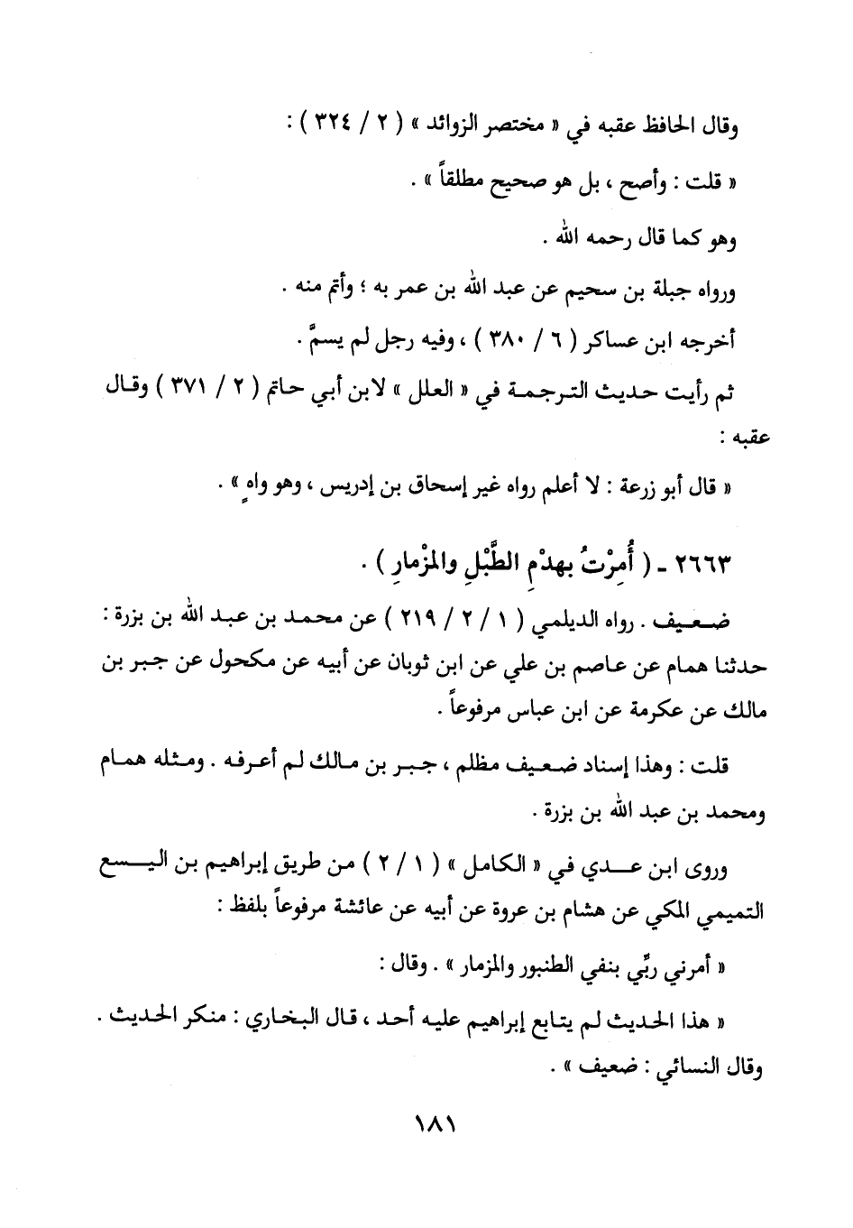 2663 - (أمرت بهدم الطبل والمزمار) .