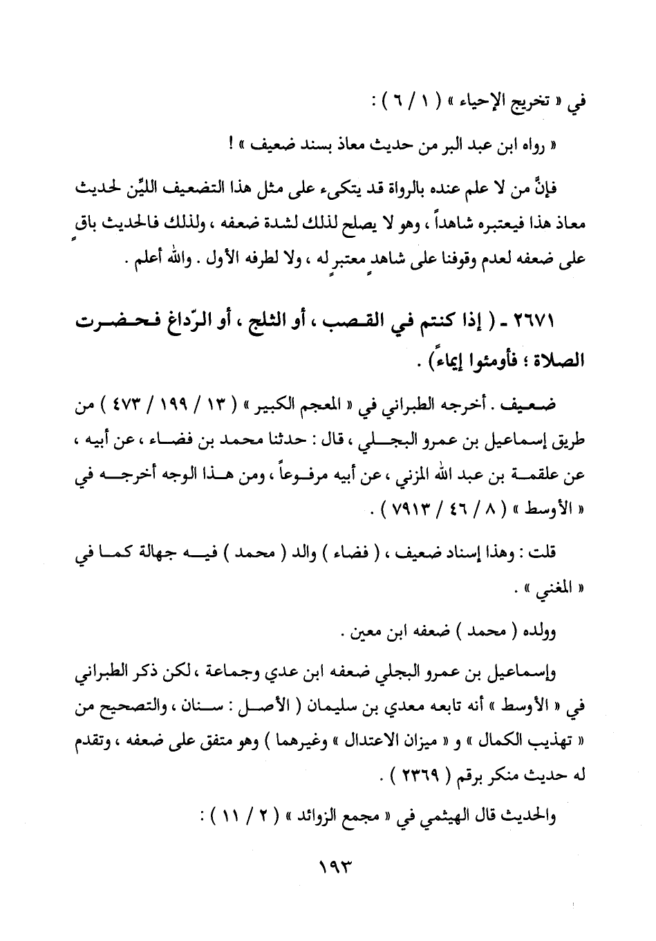 2671 - (إذا كنتم في القصب، أو الثلج، أو الرداغ فحضرت الصلاة؛ فأومئوا إيماء) .