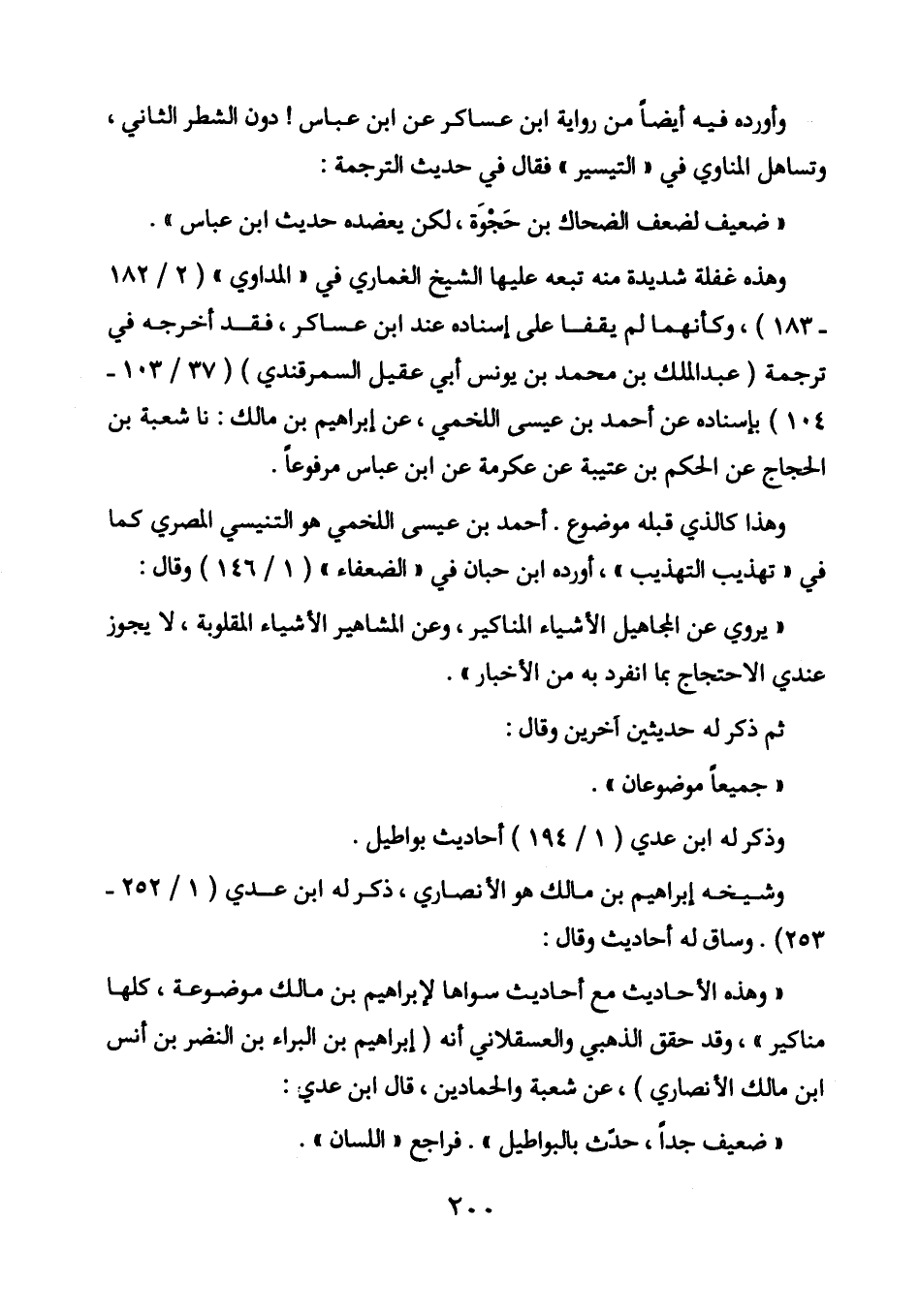 وهذه غفلة شديدة منه تبعه عليها الشيخ الغماري في " المداوي " (2/182 - 183) ، وكأنهما لم يقفا على إسناده عند ابن عساكر، فقد أخرجه في ترجمة (عبد الملك بن محمد بن يونس أبي عقيل السمرقندي) (37/103 - 104) بإسناده عن أحمد بن عيسى اللخمي، عن إبراهيم بن مالك: أخبرنا شعبة بن الحجاج عن الحكم بن عتيبة عن عكرمة عن ابن عباس مرفوعا.