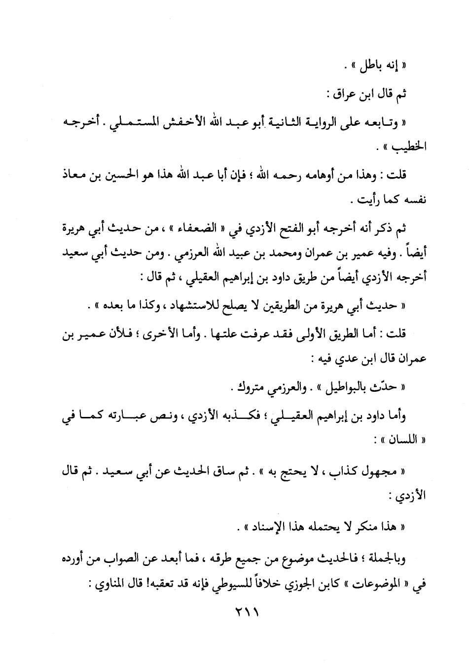 وبالجملة؛ فالحديث موضوع من جميع طرقه، فما أبعد عن الصواب من أورده في " الموضوعات " كابن الجوزي خلافا للسيوطي فإنه قد تعقبه! قال المناوي:
