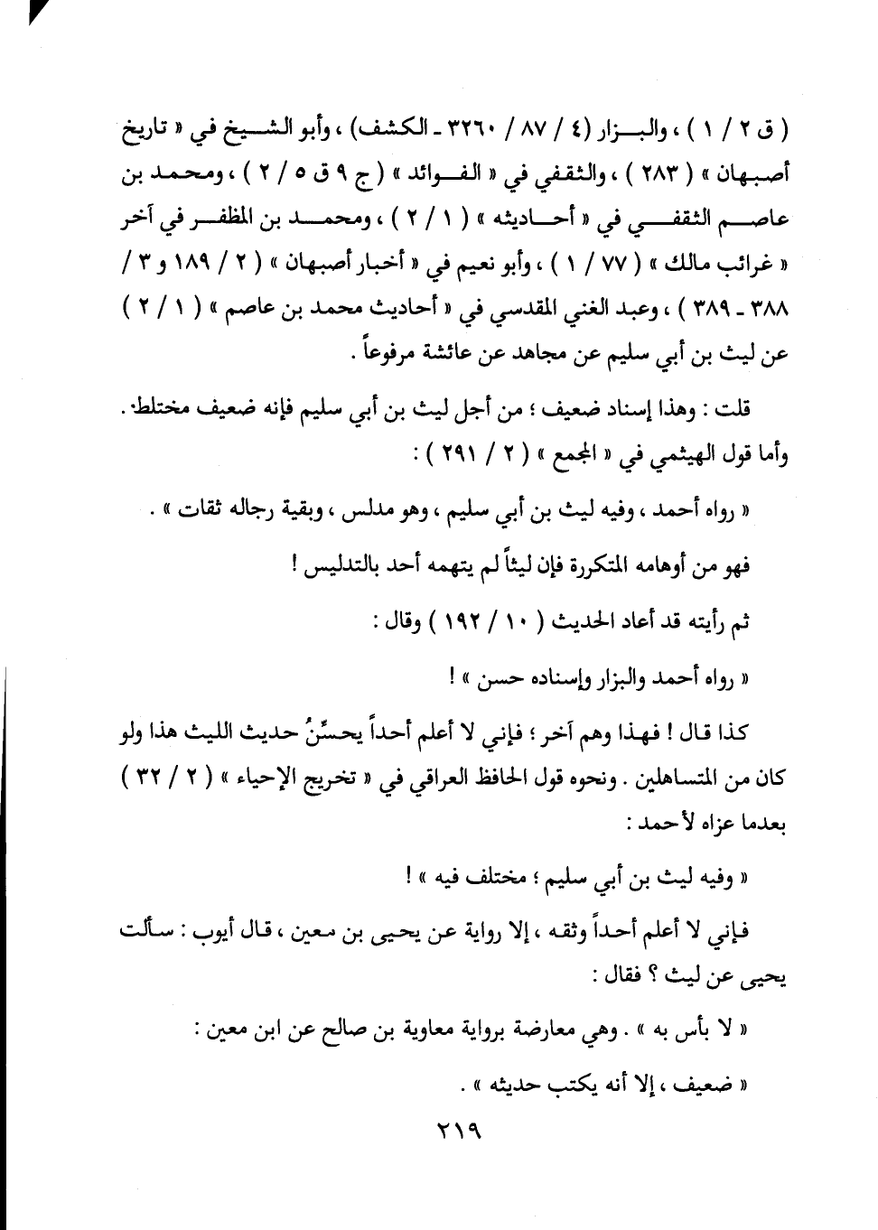 (ق 2/1) ، والبزار (4/87/3260- الكشف) ، وأبو الشيخ في " تاريخ أصبهان " (283) ، والثقفي في " الفوائد " (ج 9 ق 5 / 2) ، ومحمد بن عاصم الثقفي في " أحاديثه " (1/2) ، ومحمد بن المظفر في آخر " غرائب مالك " (77/1) ، وأبو نعيم في " أخبار أصبهان " (2/189و3/388-389) ، وعبد الغني المقدسي في " أحاديث محمد بن عاصم " (1/2) عن ليث بن أبي سليم عن مجاهد عن عائشة مرفوعا.