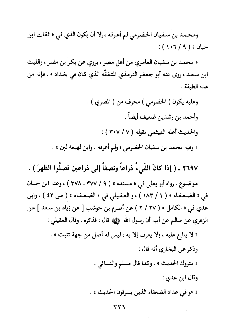 2697 - (إذا كان الفيء ذراعا ونصفا إلى ذراعين فصلوا الظهر) .