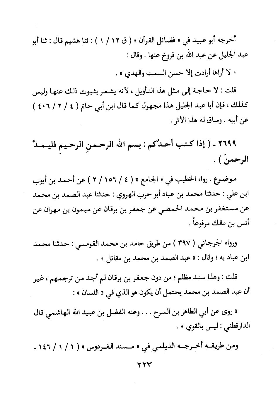 2699 - (إذا كتب أحدكم: بسم الله الرحمن الرحيم فليمد الرحمن) .