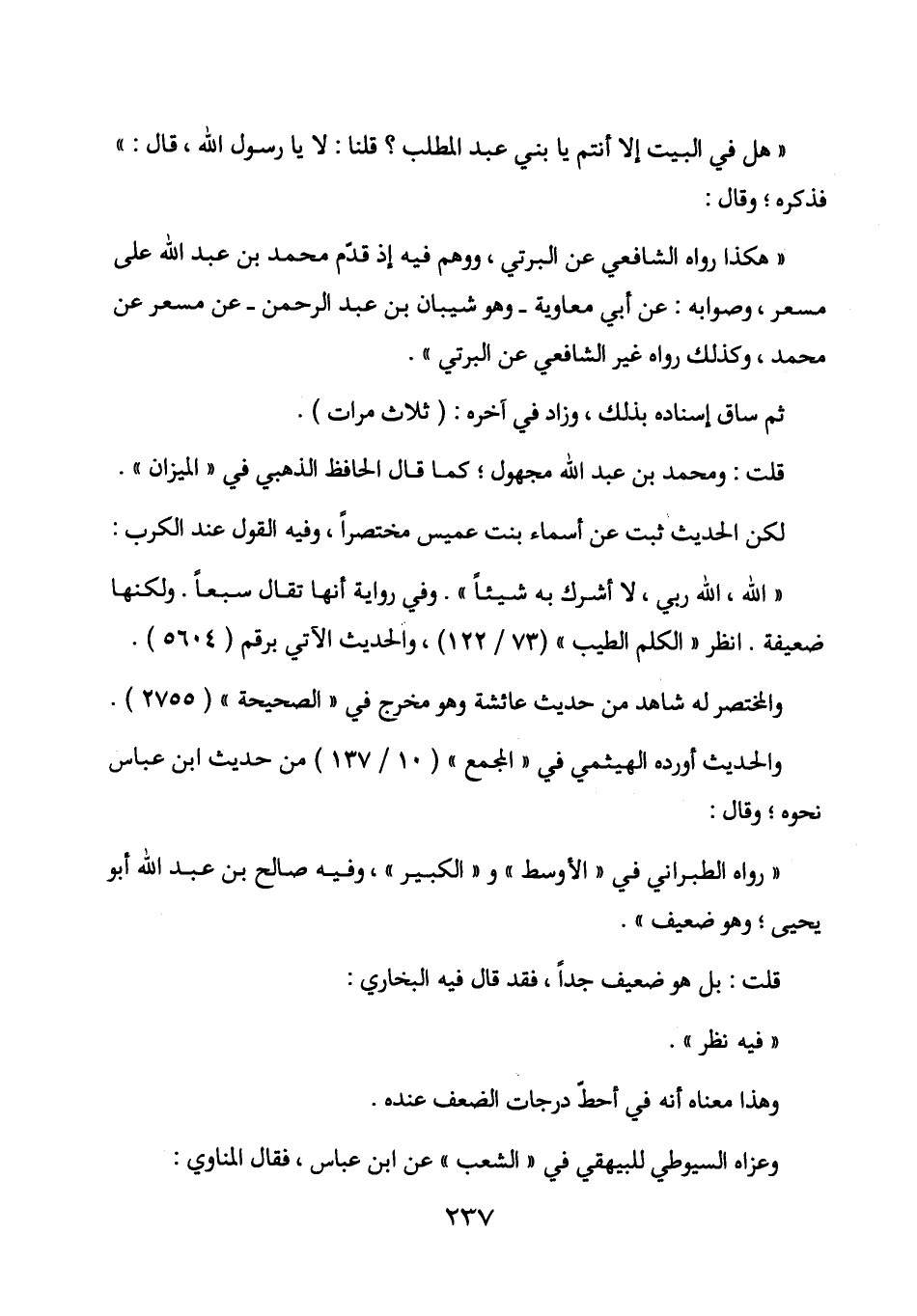 " هكذا رواه الشافعي عن البرتي، ووهم فيه إذ قدم محمد بن عبد الله على مسعر، وصوابه: عن أبي معاوية - وهو شيبان بن عبد الرحمن - عن مسعر عن محمد، وكذلك رواه غير الشافعي عن البرتي ".