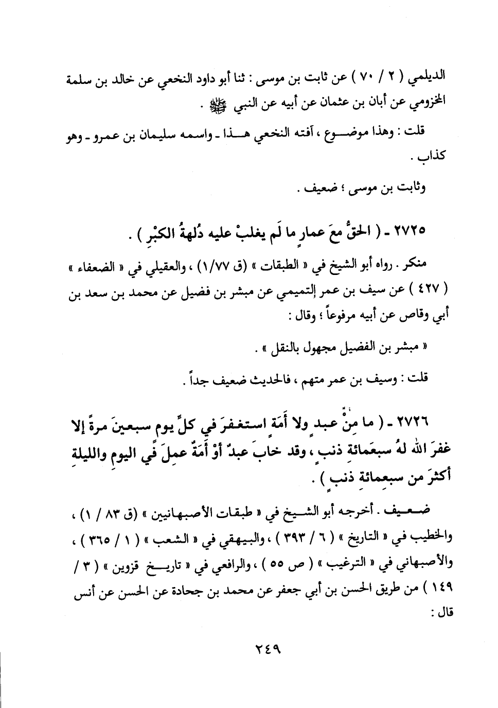 2726 - (ما من عبد ولا أمة استغفر في كل يوم سبعين مرة إلا غفر الله له سبعمائة ذنب، وقد خاب عبد أو أمة عمل في اليوم والليلة أكثر من سبعمائة ذنب) .